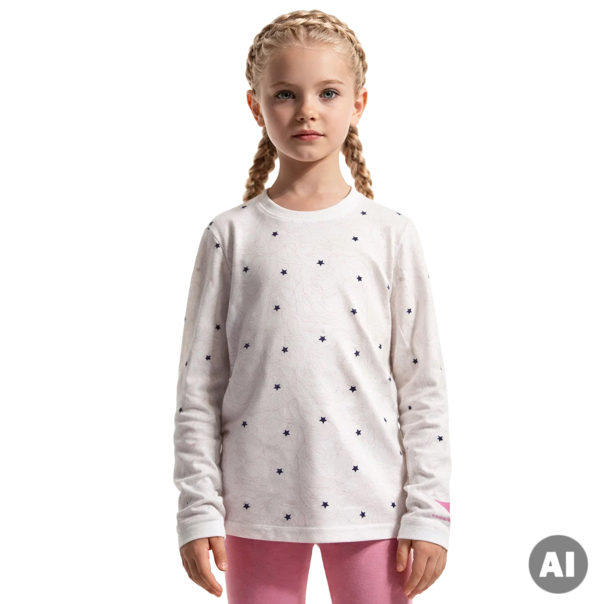 T-SHIRT, FOR GIRLS, ROUND NECK, LONG SLEEVES, SOLID COLOUR, WITH LOGO