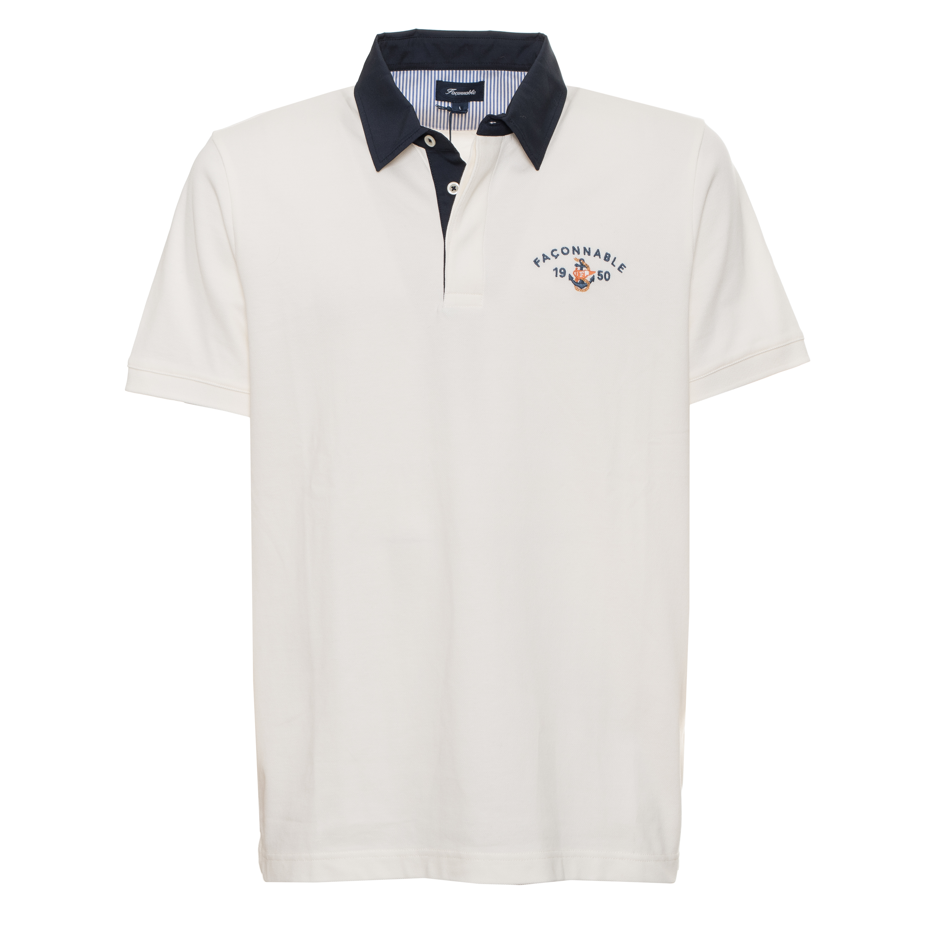 Ez a POLO NAUT ANCHOR POLO a FACONNABLE márkától a stílusos precizitás megtestesítője. A kontrasztos gallér és a mellen található részletgazdag horgonyhímzés egyedi karaktert kölcsönöz a darabnak. A rövid ujjak és a kétgombos nyakmegoldás tiszta vonalvezetést biztosít, amely hűen tükrözi a márka esztétikai értékeit.