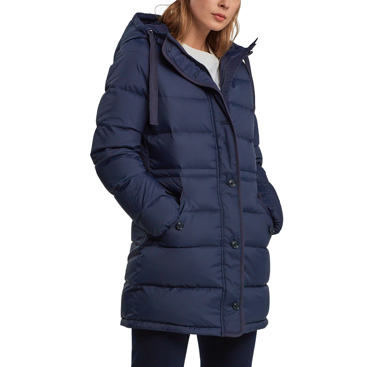 DOWN JACKET, FOR WOMEN, WITH HOOD, LONG DROP, LONG SLEEVES, SOLID COLOUR, WITH LOGO, ZIP CLOSURE