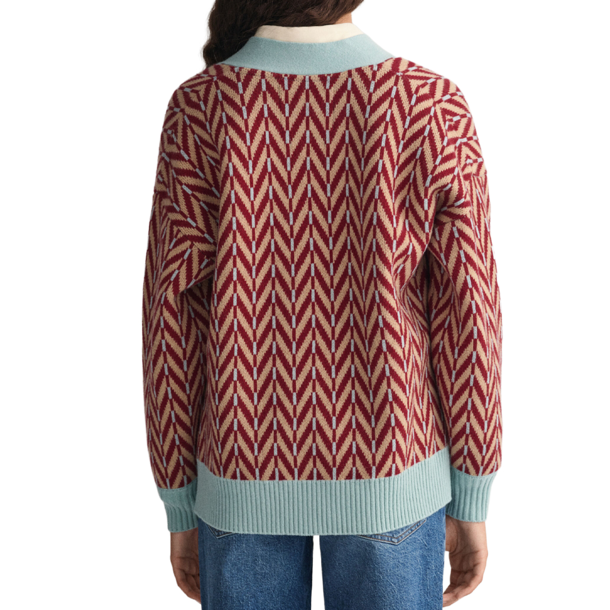 CARDIGAN, FOR WOMEN, V-NECK, LONG SLEEVES, MULTICOLOR, WITH LOGO, BUTTON CLOSURE