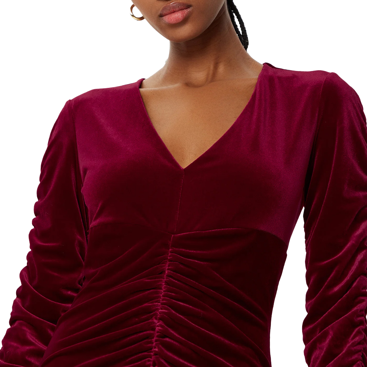 DRESS, FOR WOMEN, V-NECK, LONG SLEEVES, SOLID COLOUR, VELVET, ZIP CLOSURE