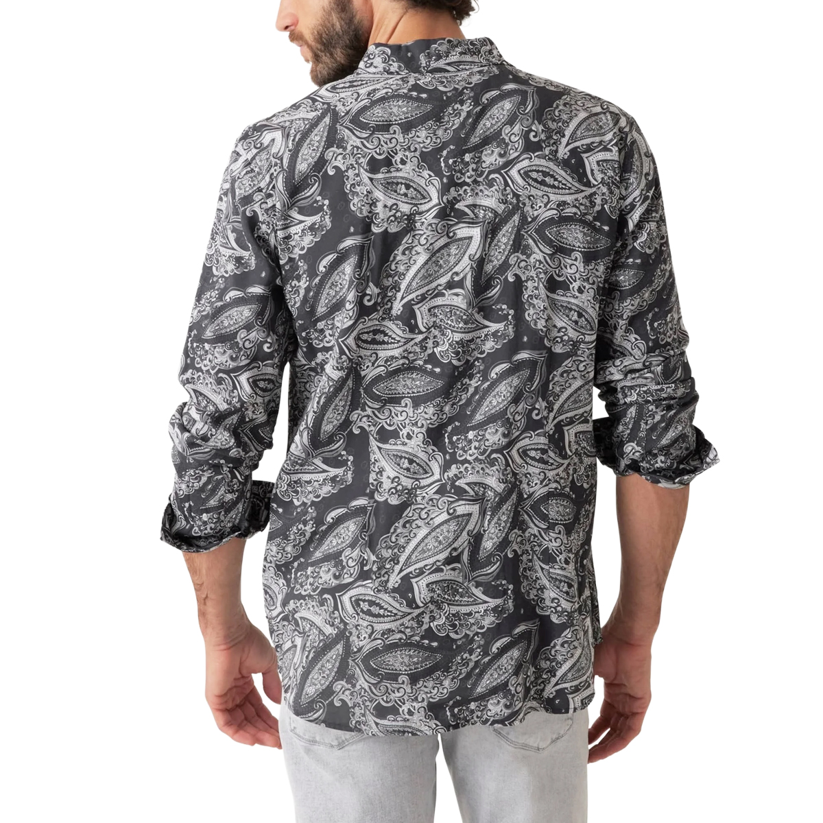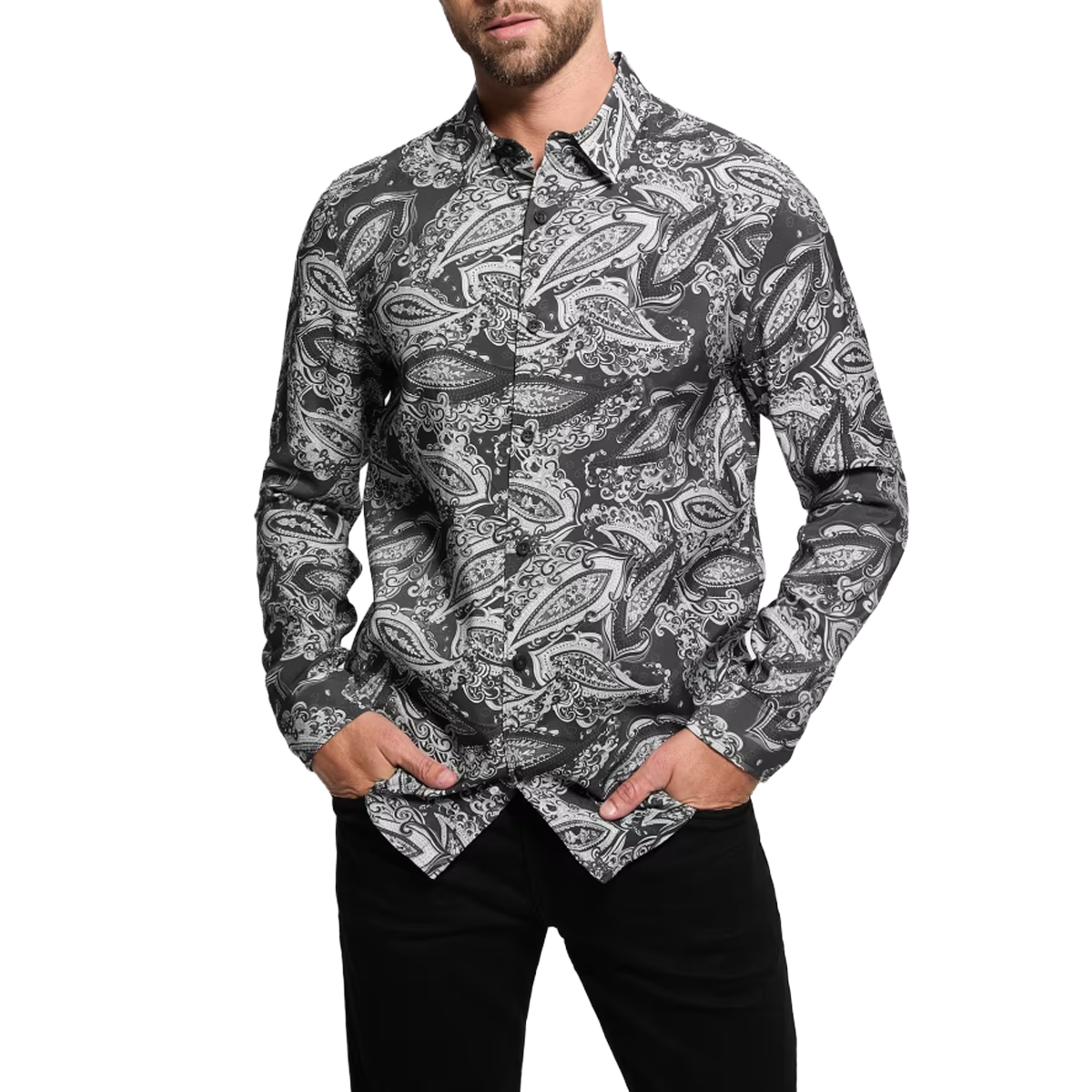 Ez a GUESS által jegyzett camicia LS SANDWASH PAISLEY SHIRT a klasszikus szabászat és a modern grafikai elemek találkozása, ahol a paisley minta dominál. A hosszú ujjú kialakítás és a gombos rögzítés precíz kivitelezése a márka szakértelmét tükrözi minden részletében.