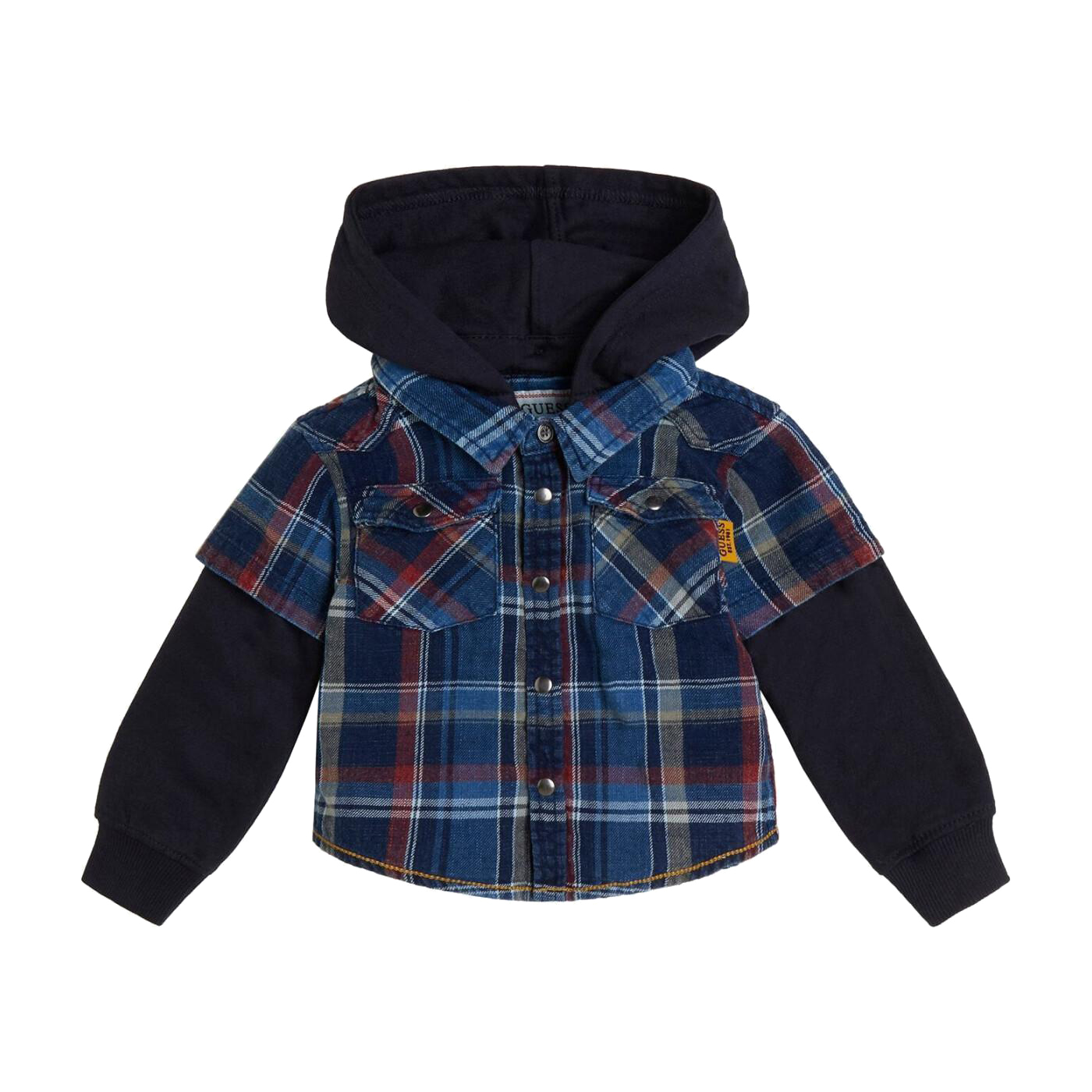 SHIRT, FOR KIDS, WITH POCKET, BASIC COLLAR, LONG SLEEVES, CHECKED, MULTICOLOR, WITH LOGO, BUTTONS CLOSURE