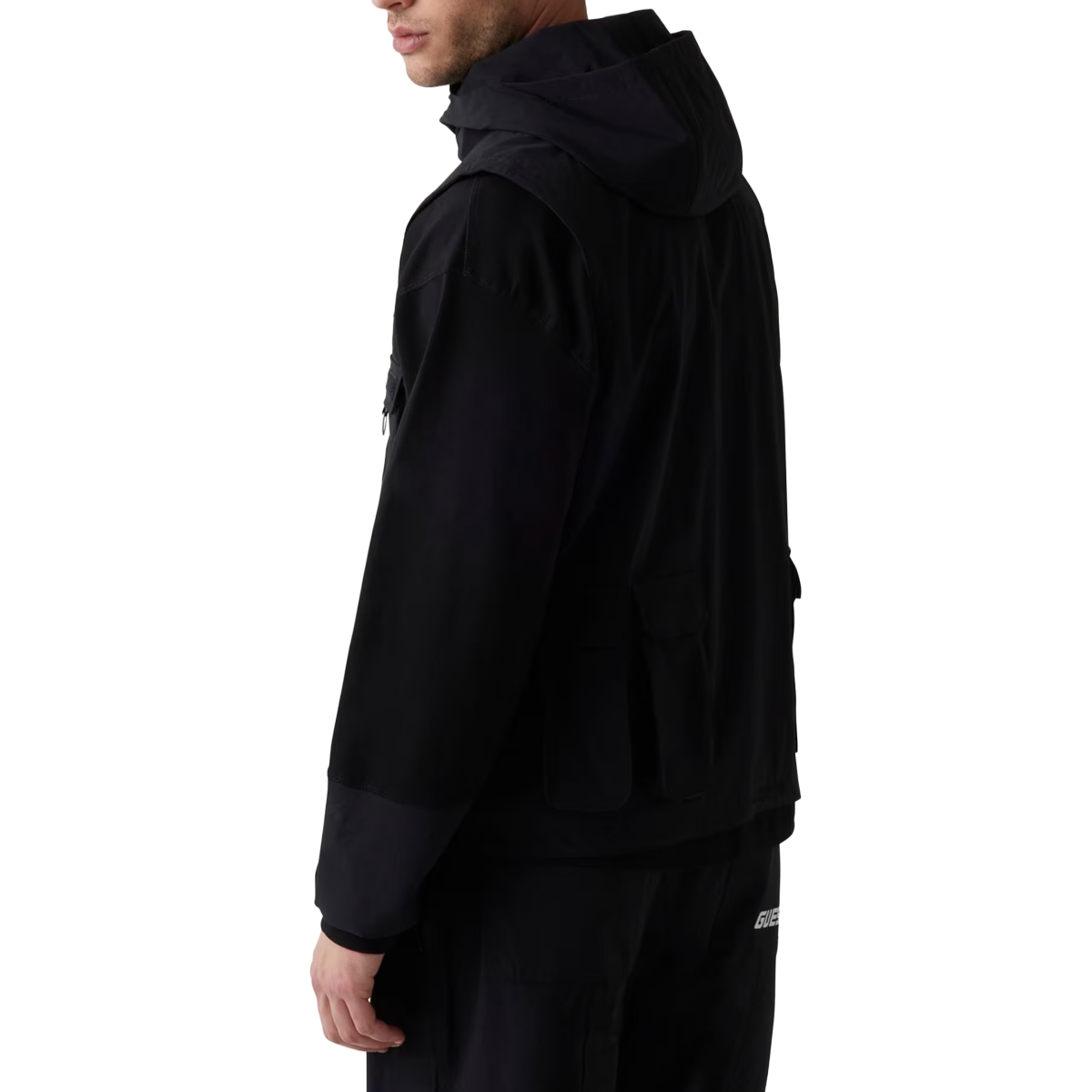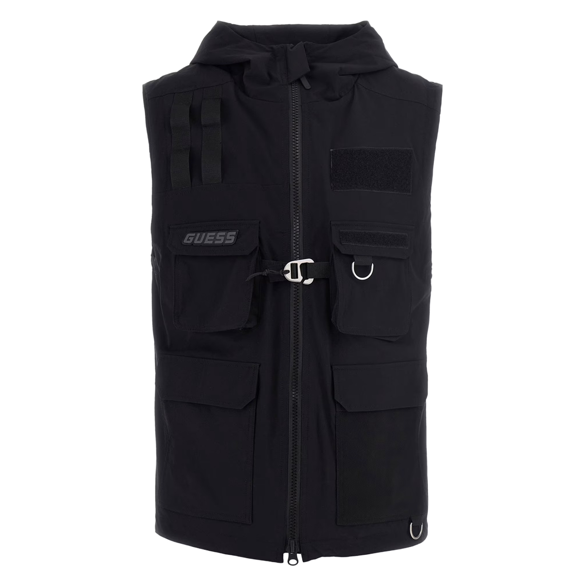 Ez a Galium Hooded Vest dzseki a GUESS márkától egy technikai ruhadarab, amely a praktikus tárolóhelyekre és a többrétegű öltözködésre összpontosít. A mellény kialakítását a többpontos zsebrendszer és a funkcionális pántok határozzák meg. A központi csatos záródás és a tépőzáras panelek dinamikus megjelenést kölcsönöznek a sziluettnek.