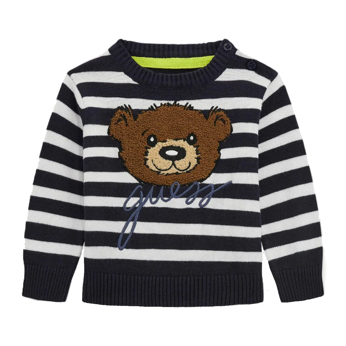 KNITWEAR, FOR KIDS, ROUND NECK, LONG SLEEVES, STRIPES, EMBROIDERED LOGO