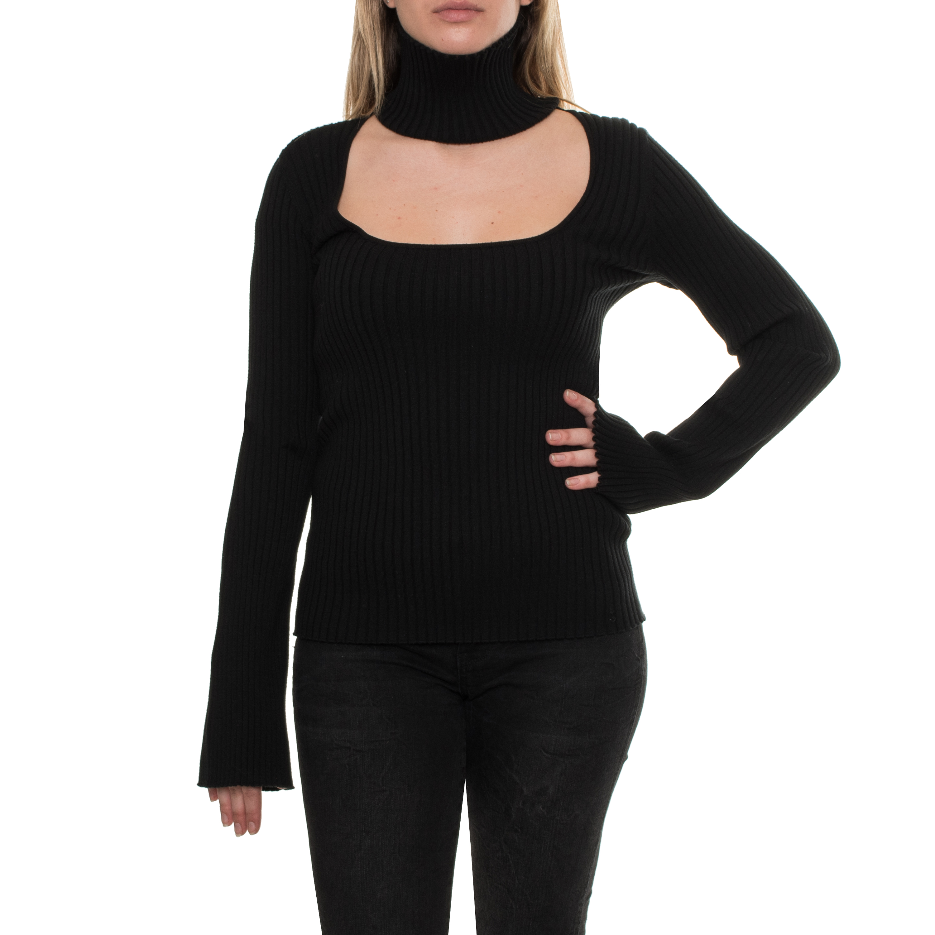 KNITWEAR, FOR WOMEN, TURTLE NECK, LONG SLEEVES, SOLID COLOUR, WITH LOGO
