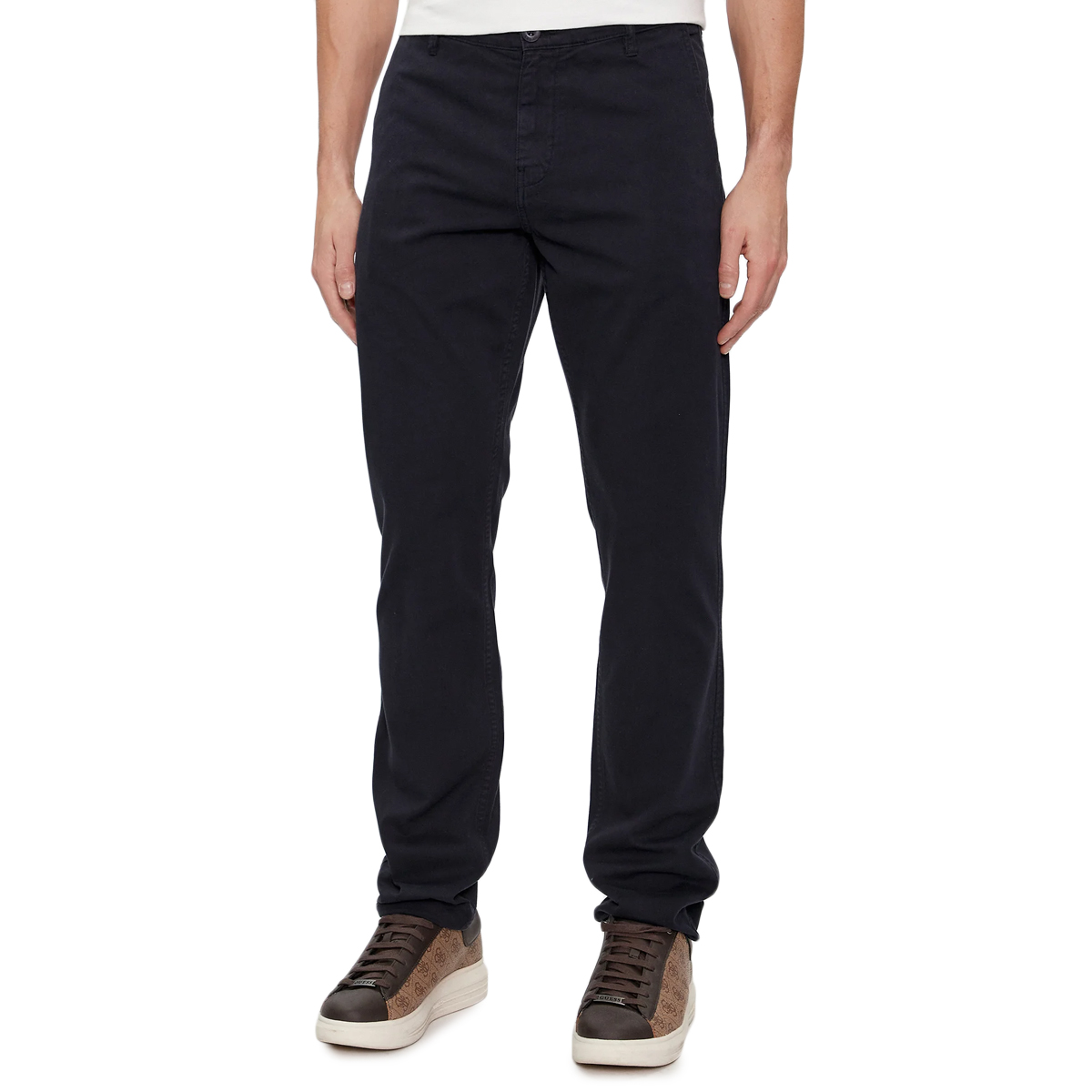 TROUSERS, FOR MEN, FOUR POCKETS, WELT POCKETS, SLIM FIT, SOLID COLOUR, WITH LOGO, ZIP AND BUTTONS CLOSURE