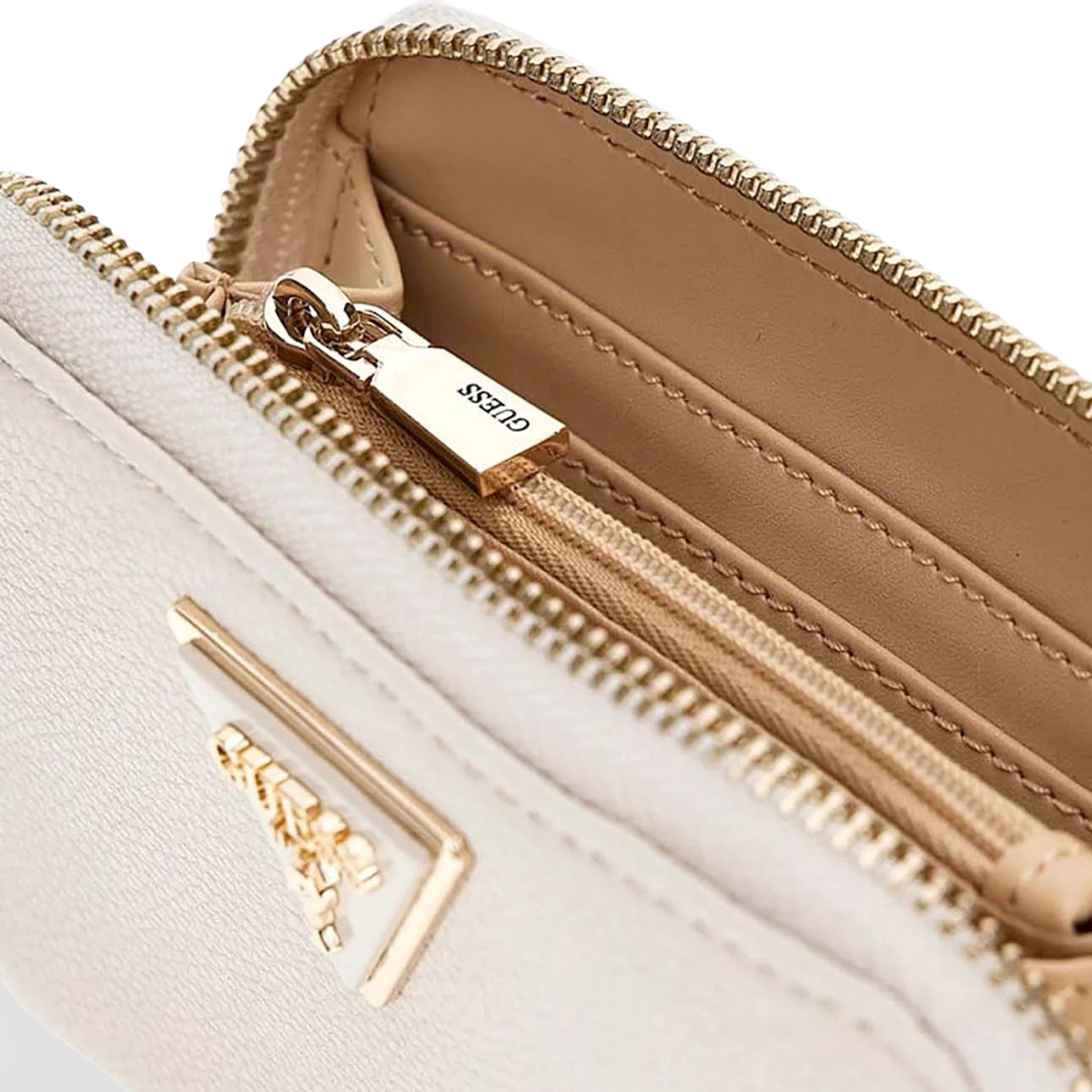 Ez a közepes pénztárca LAUREL SLG MEDIUM ZIP AROUND a GUESS márkától különleges tapintású felülettel rendelkezik, amelyet a körbefutó cipzáras záródás tesz teljessé. A kompakt méretek ellenére a kialakítás tágas belsőt sejtet, míg a külső megjelenést az ikonikus, háromszög alakú logó határozza meg, elegáns hangsúlyt adva a letisztult formának.