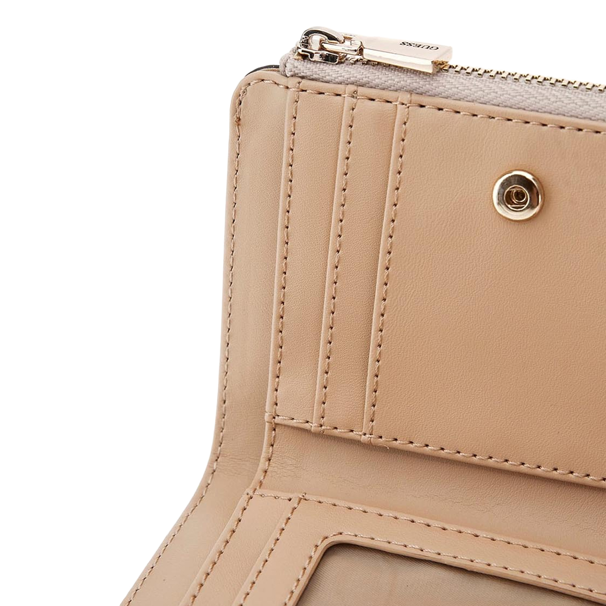 Ez a GUESS LAUREL SLG ZIP ARND CARD CASE kis pénztárca egy letisztult és elegáns kiegészítő, amely a praktikus tárolást helyezi előtérbe. A termék felszínét finom, keresztirányú textúra borítja, amely professzionális megjelenést kölcsönöz, miközben a központi fém logó a márka hagyományait idézi. A keret mentén futó tűzések biztosítják a szerkezet stabilitását és a sarkok tartósságát.