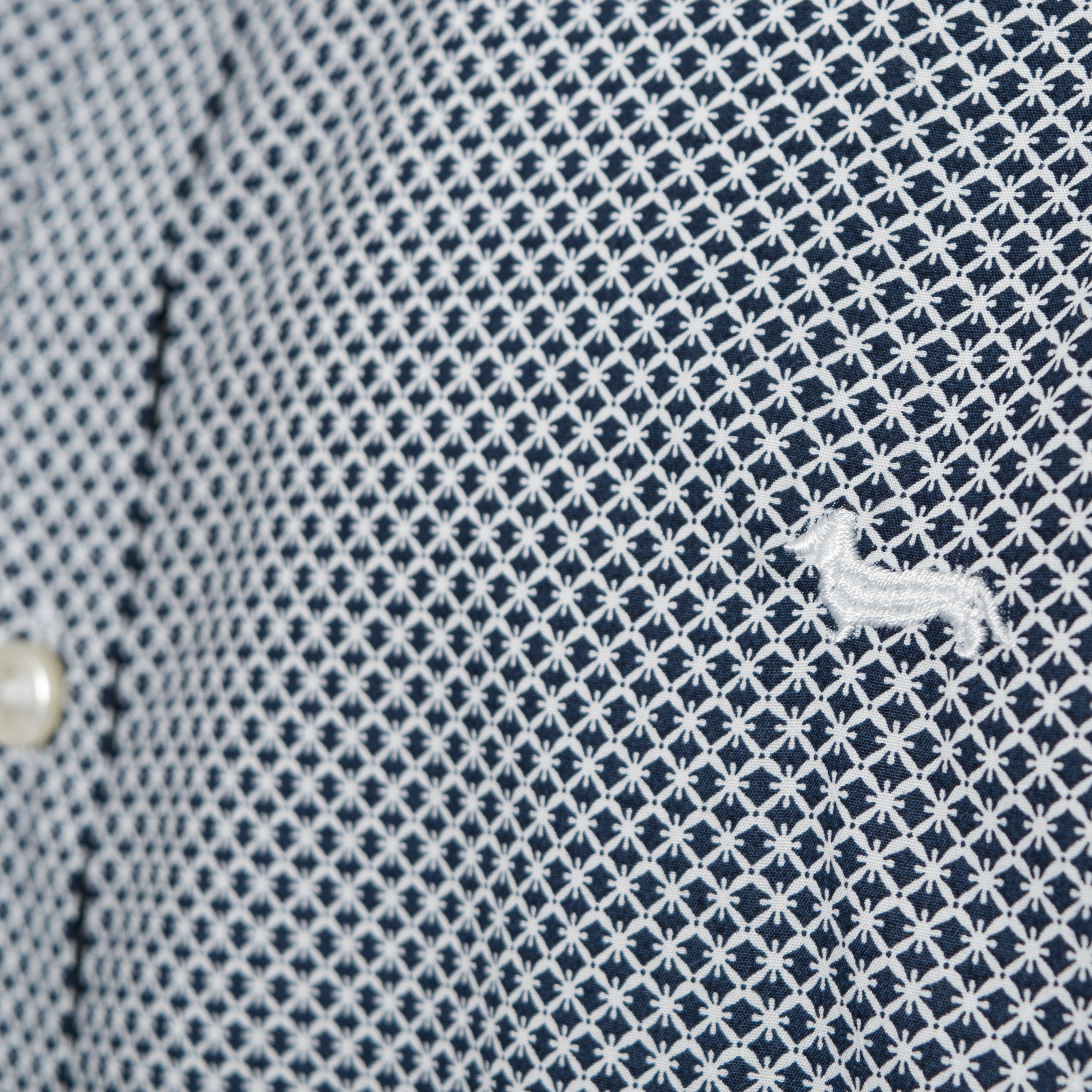 A gombokkal rögzített keskeny gallér adja meg ennek a Harmont & Blaine hosszú ujjú ingnek az alapvető karakterét. A tiszta pamutból készült ruhanemű felületét apró kockás minta borítja, amely izgalmas textúrát kölcsönöz a megjelenésnek. A mellkason elhelyezett hímzett jelzés finom utalás a márka örökségére. Az egyenes vonalvezetés és a precízen kialakított kézelők kényelmes viseletet tesznek lehetővé. Ez a darab a kiegyensúlyozott arányokra és a látható minőségre épít, megőrizve a klasszikus férfi sziluett értékeit.