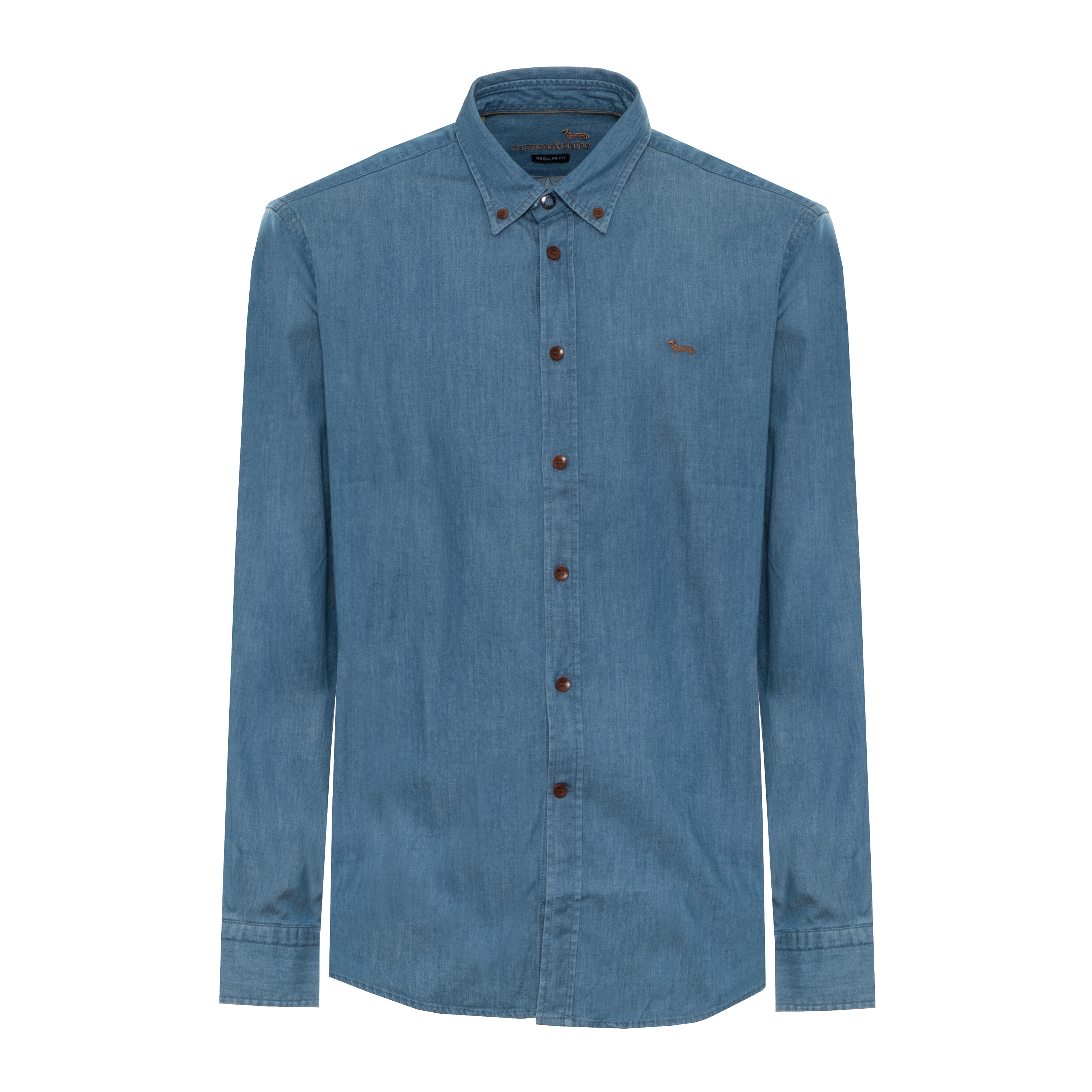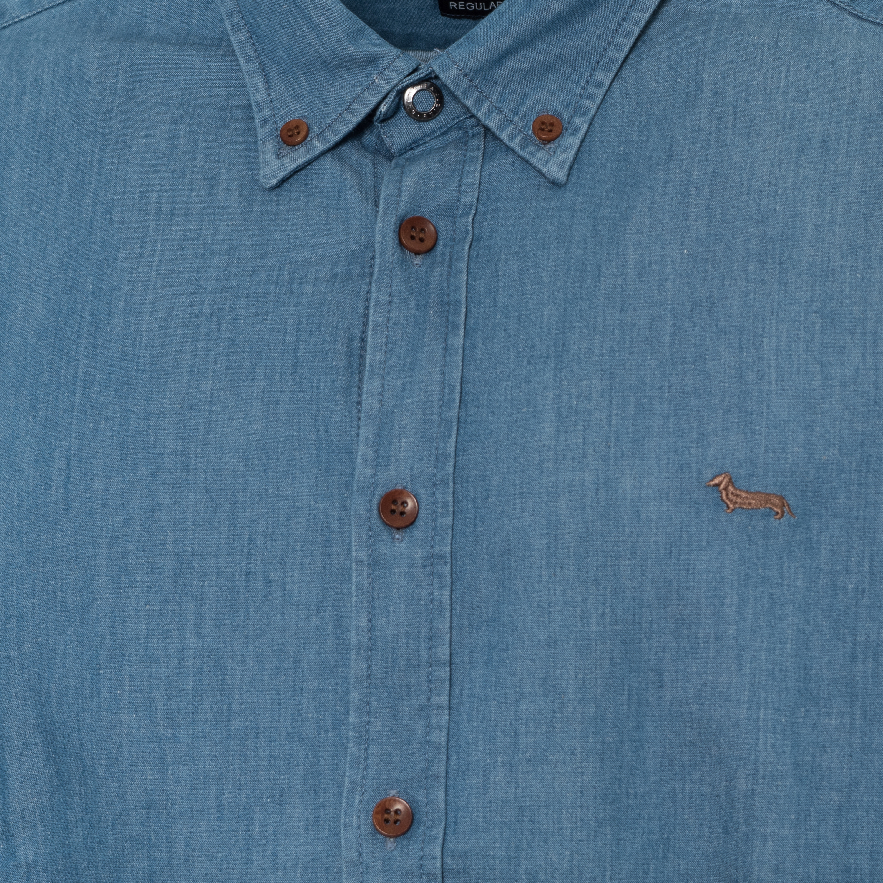 SHIRT, FOR MEN, BUTTON DOWN, REGULAR FIT, LONG SLEEVES, SOLID COLOUR, EMBROIDERED LOGO, BUTTONS CLOSURE
