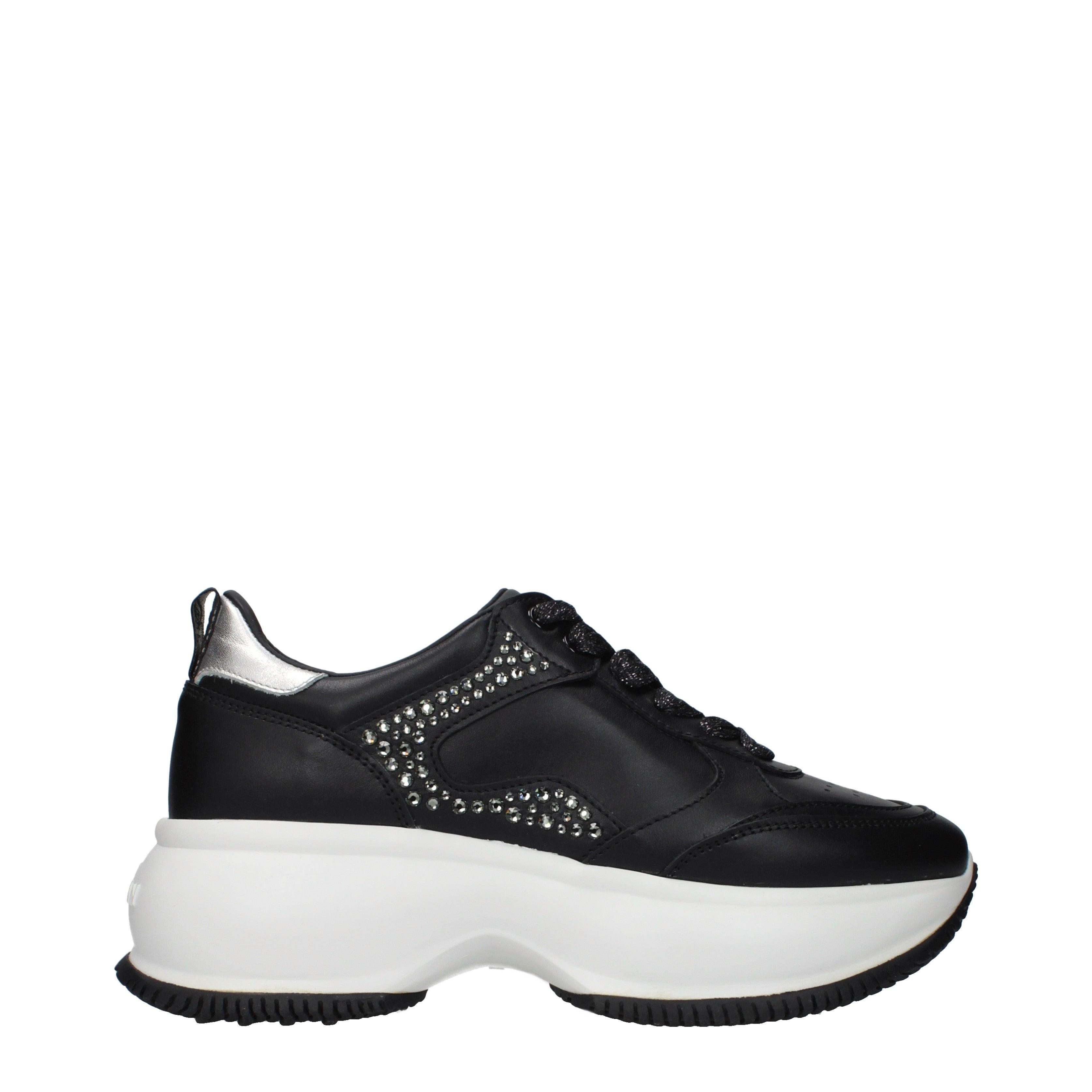 Ez a HOGAN Atelier Maxi I Active sneakers egy látványos darab, amely az emelt talpszerkezetével hívja fel magára a figyelmet. Az oldalsó logót apró kristályok díszítik, amelyek visszafogott pompát kölcsönöznek a lábbelinek. A kerek orr és a fűzős záródás klasszikus formavilágot képvisel, miközben a saroknál található metálos részlet modern kontrasztot teremt.