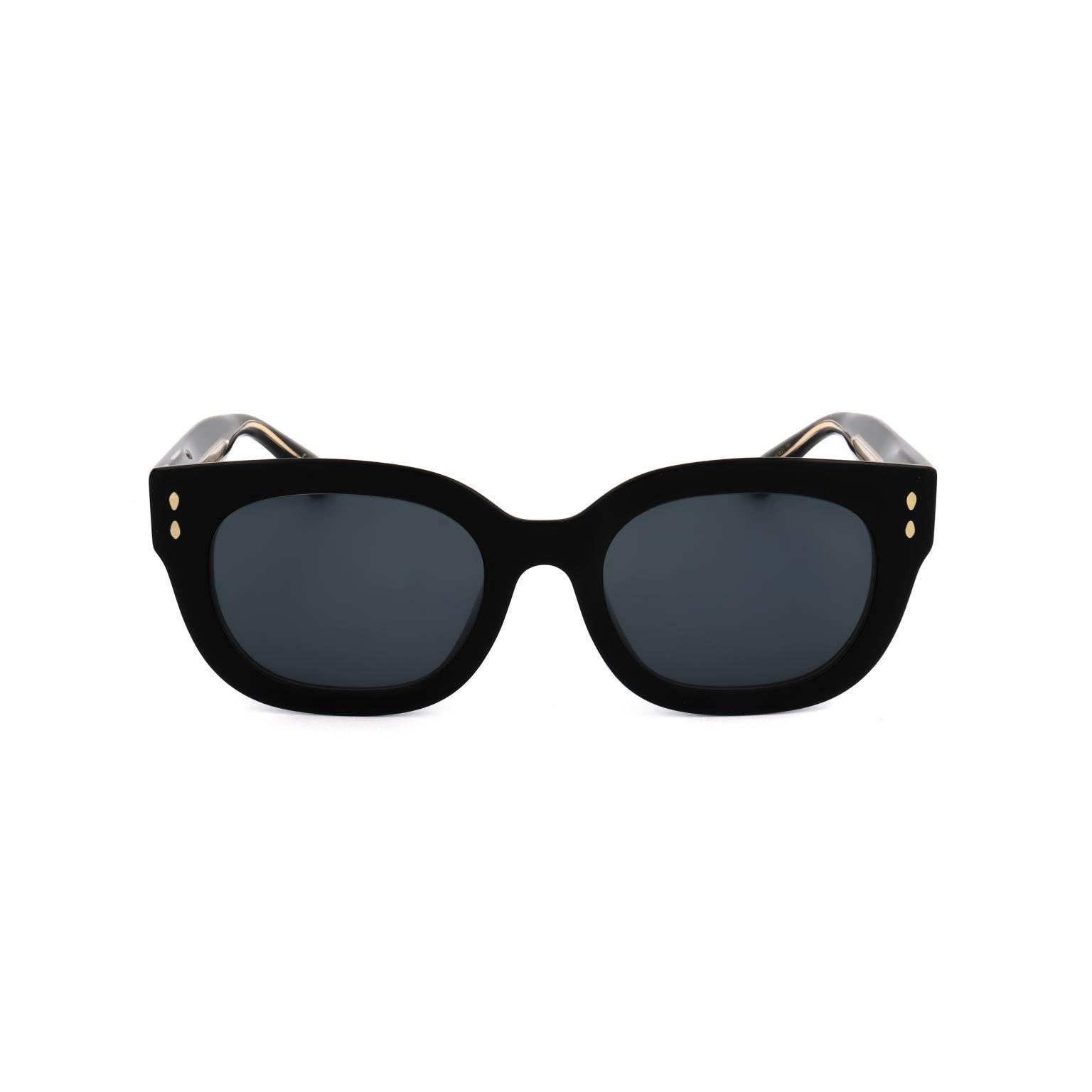 Ez az ISABEL MARANT occhiali hangsúlyos, karakteres kerettel rendelkezik, amely a geometrikus formák és a lágyított ívek találkozására épít. A frontrészen elhelyezett apró fém szegecsek a gondos összeszerelés és a technikai precizitás jelei. A széles szárkialakítás nemcsak a tartósságot növeli, hanem vizuális egyensúlyt is teremt a lencsék méretével.