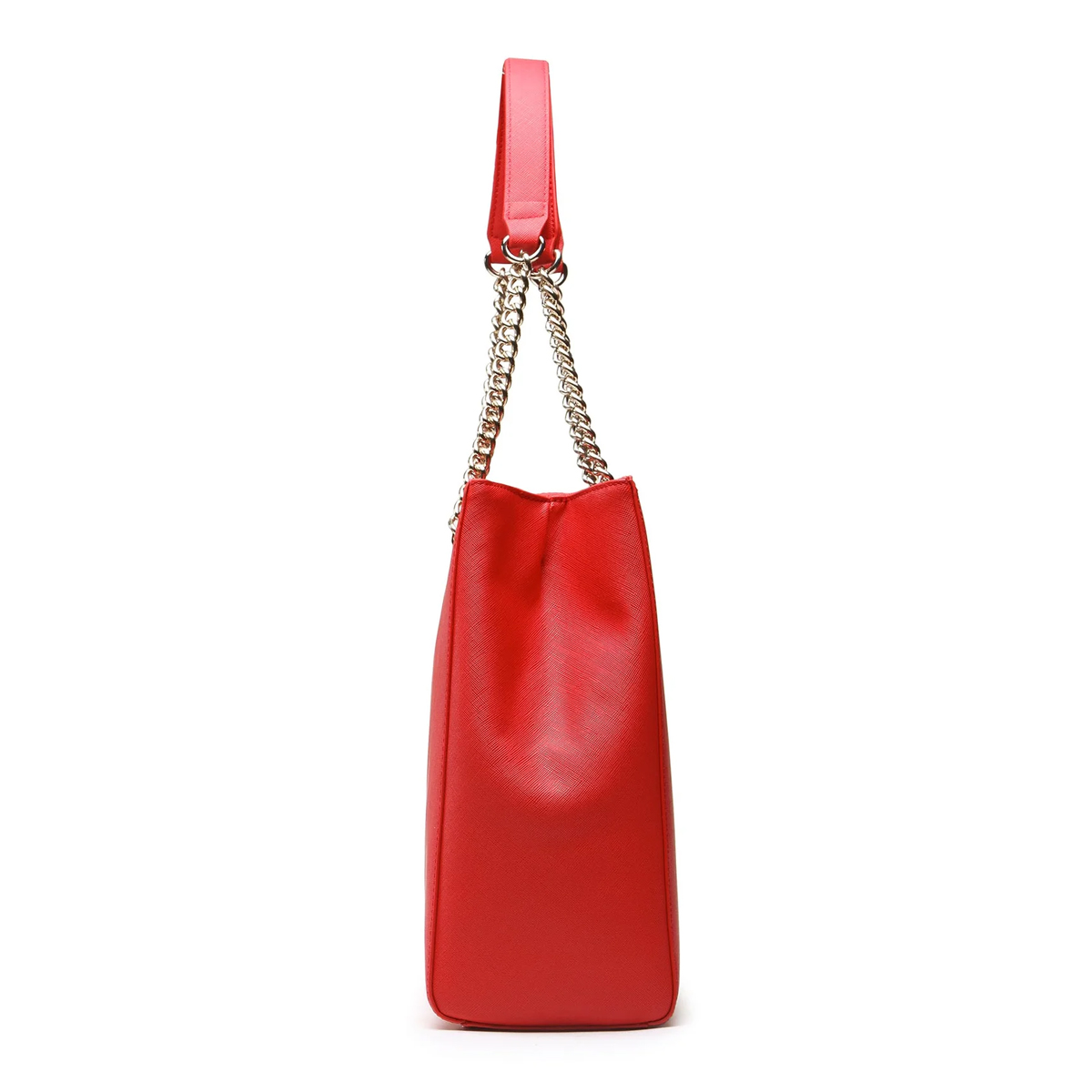 SHOULDER BAG, FOR WOMEN, DOUBLE HANDLE, SOLID COLOUR, WITH LOGO, MAGNET CLOSURE