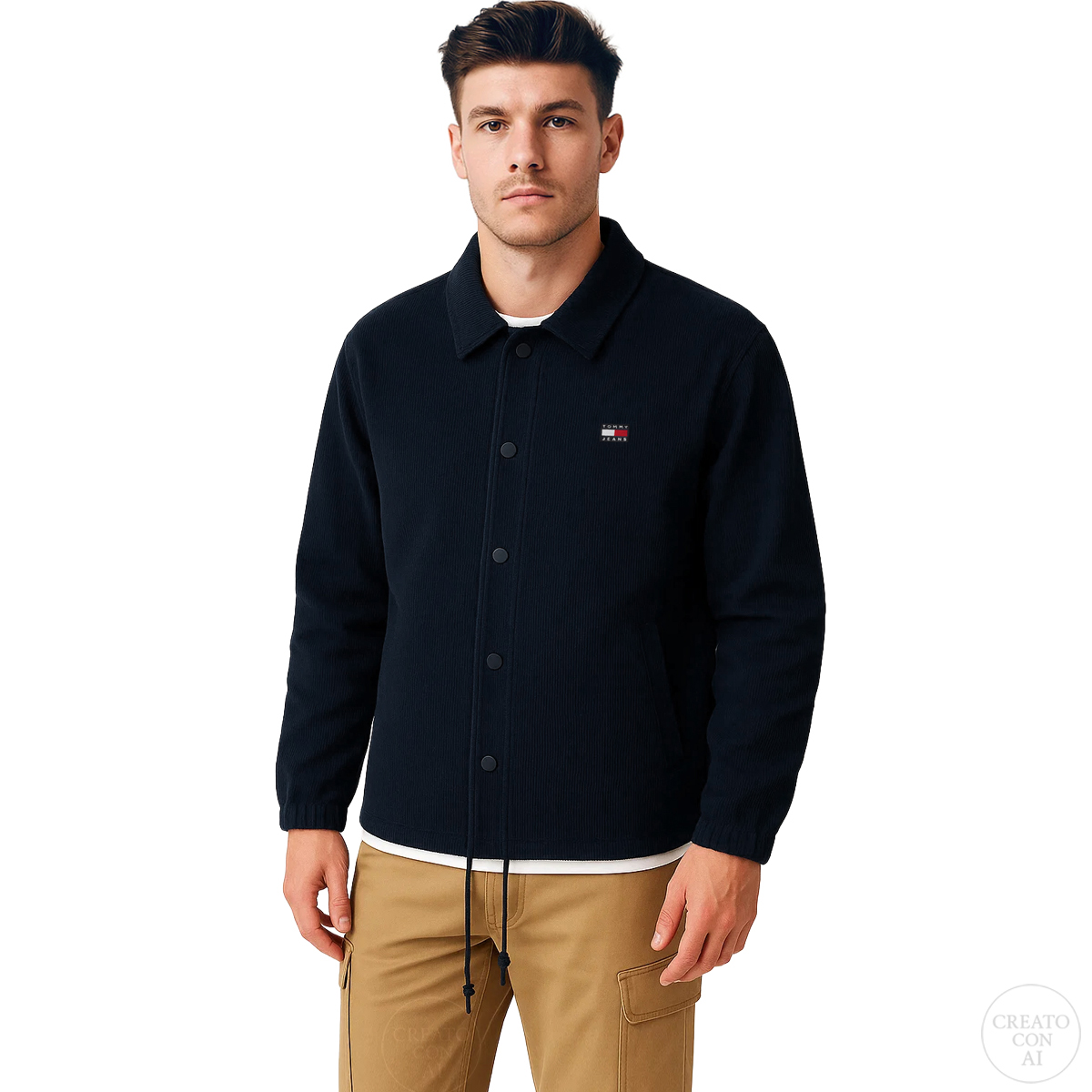 SHIRT, FOR MEN, BASIC COLLAR, LONG SLEEVES, SOLID COLOUR, VELVET, WITH LOGO, BUTTONS CLOSURE