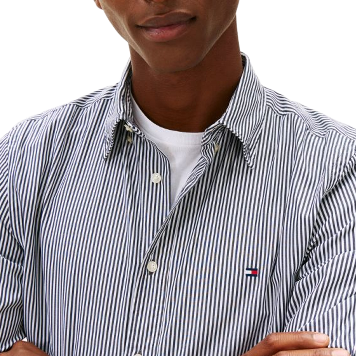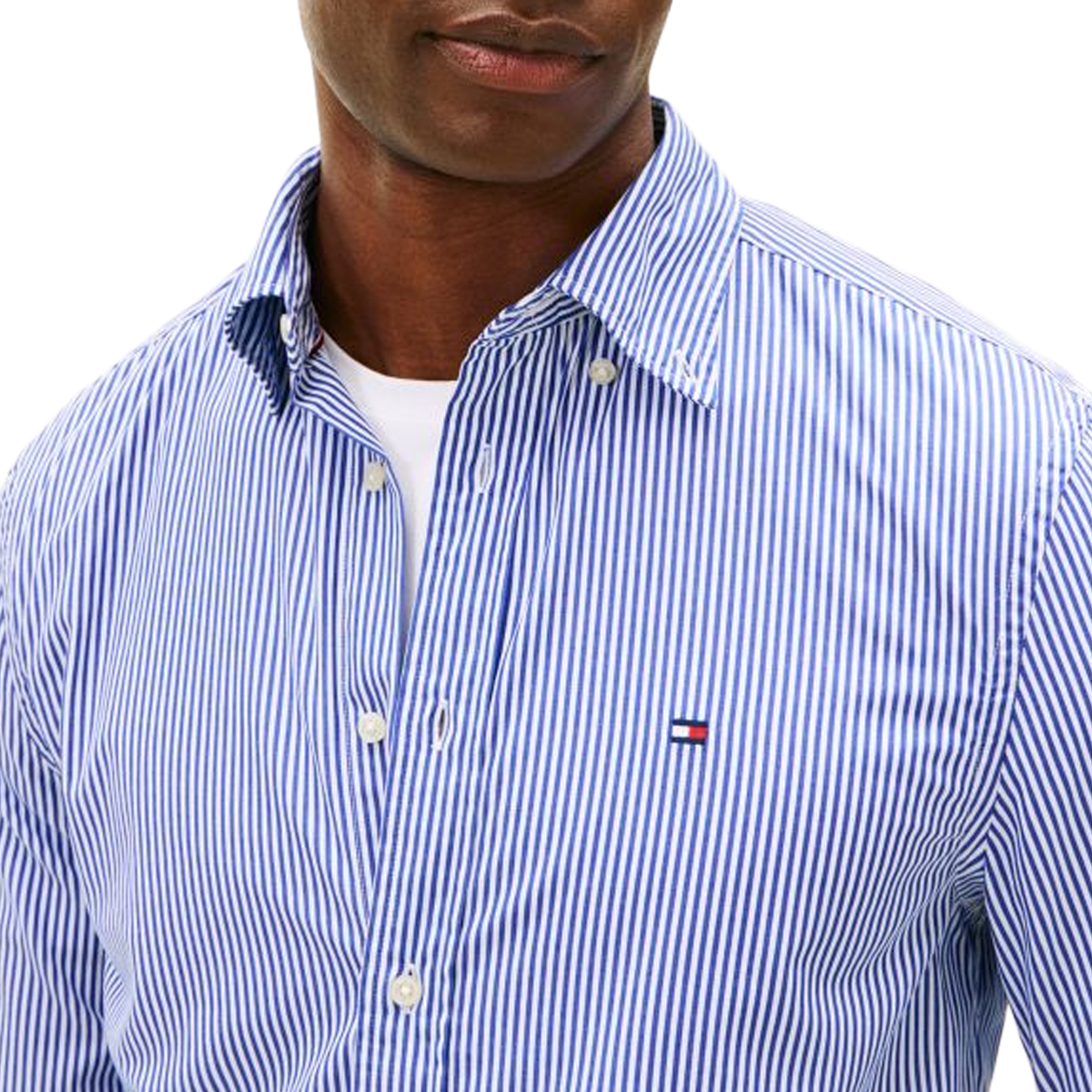 Ez a TOMMY HILFIGER CORE FLEX POP CLASSI, 0A4 ing egy arányos szabású darab, amely a hagyományos button-down gallérral és finom függőleges csíkozással készül. A hosszú ujjú kialakítás és a szabályos illeszkedés kényelmes viseletet biztosít, miközben megőrzi a professzionális megjelenést. A mellrészen található hímzett logó a márka iránti elkötelezettség és a precíz kivitelezés jele.