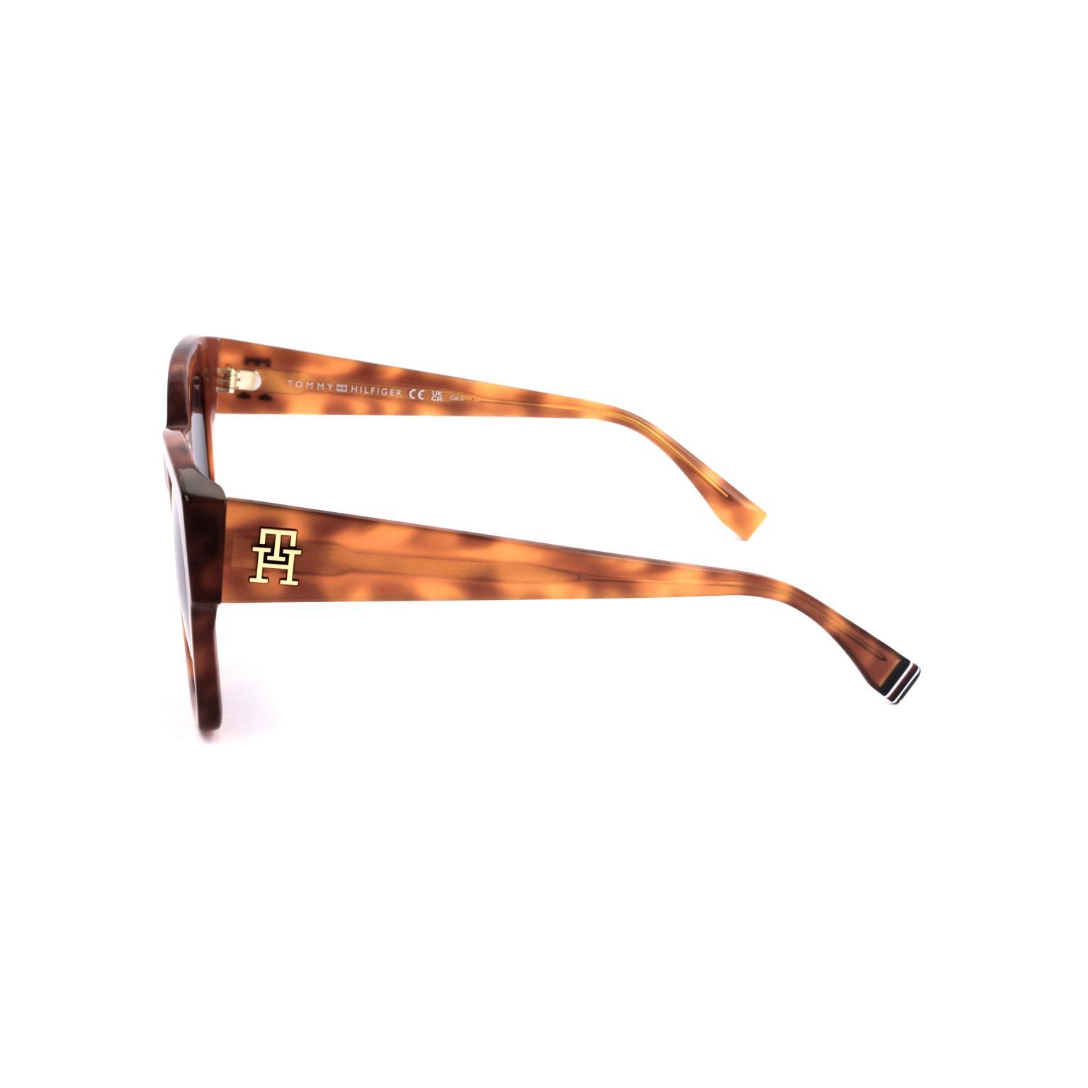 Ez a TOMMY HILFIGER női OCCHIALI napszemüveg egy karakteres és modern keretkialakítást mutat be, amelynek enyhén felfelé ívelő külső sarkai elegáns megjelenést kölcsönöznek. A vastag, masszív keretet gazdag teknőspáncél minta emeli ki, amely vizuális mélységet és igényes részletgazdagságot ad. A sötét, jól illeszkedő lencsék teszik teljessé ezt a különleges kiegészítőt.