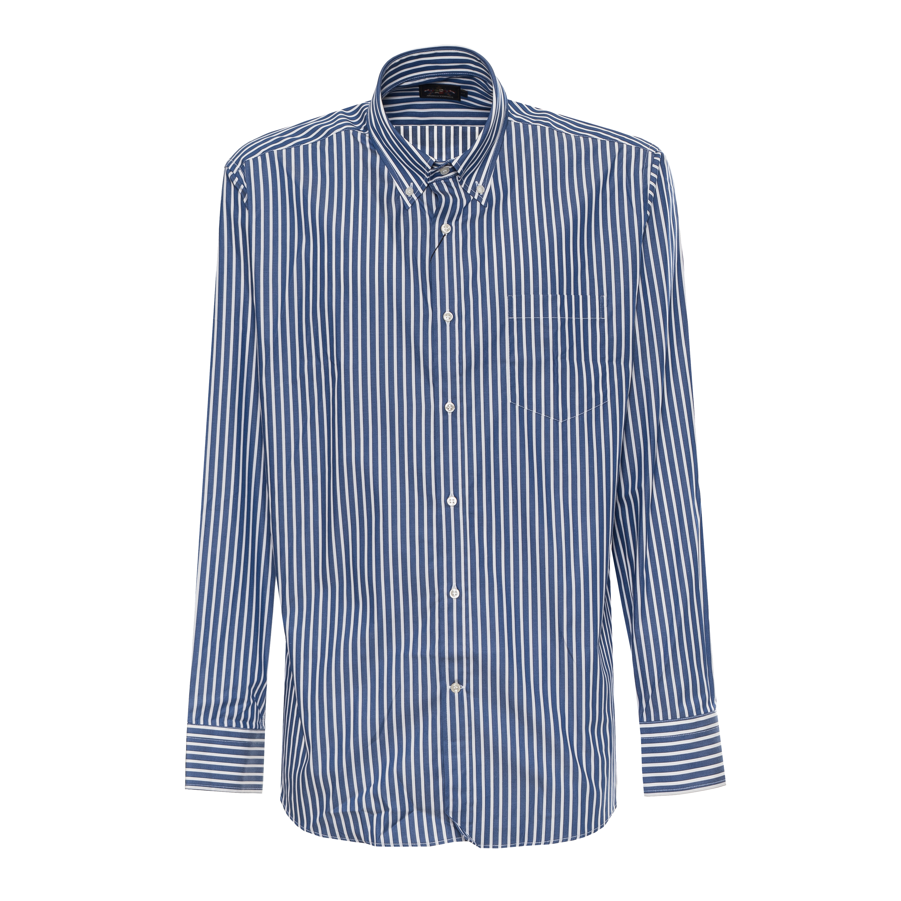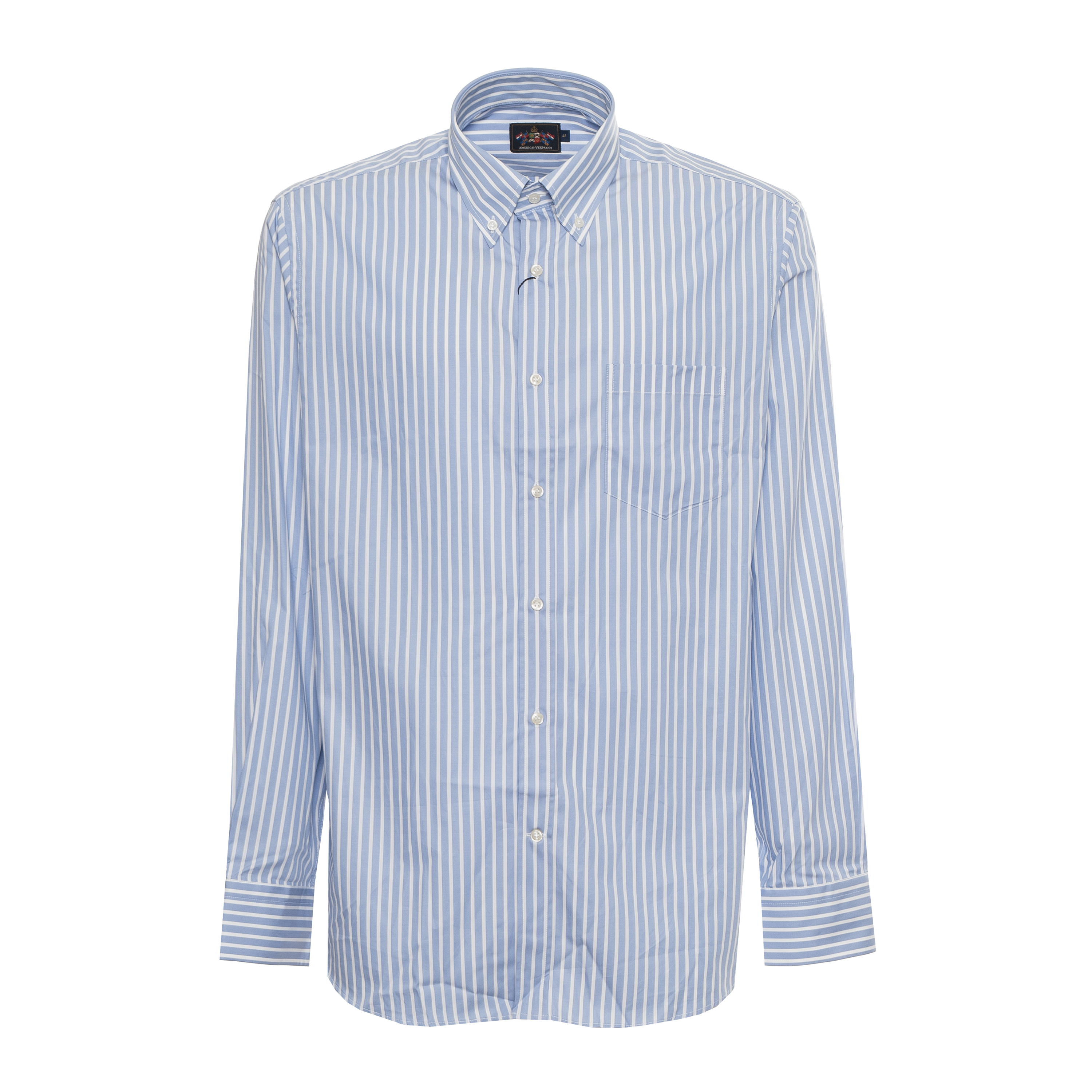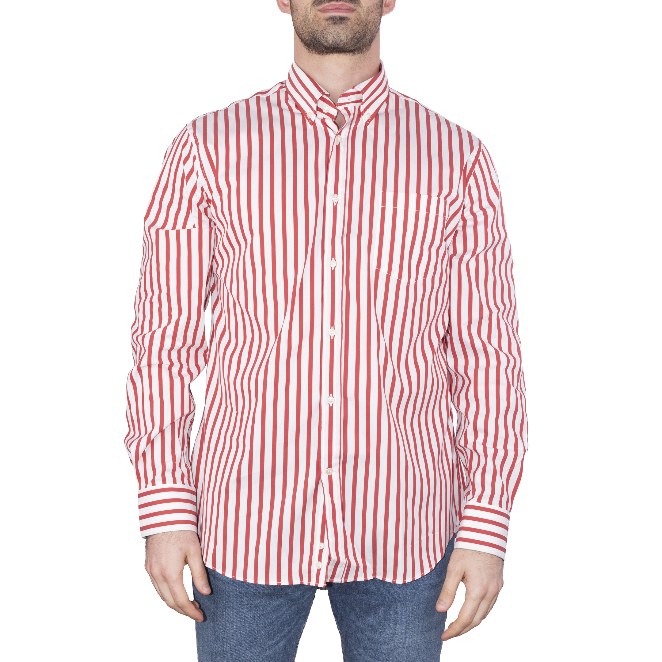 CAMICIA A RIGHE, DA UOMO, CON TASCHINO, BUTTON DOWN, MANICA LUNGA, MULTICOLORE, CON LOGO, CHIUSURA BOTTONI