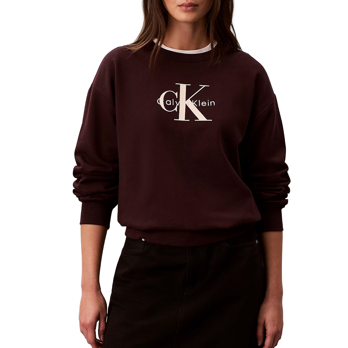 FELPA, DA DONNA, GIROCOLLO, TINTA UNITA, NON FELPATO, TESSUTO GARZATO, CON LOGO