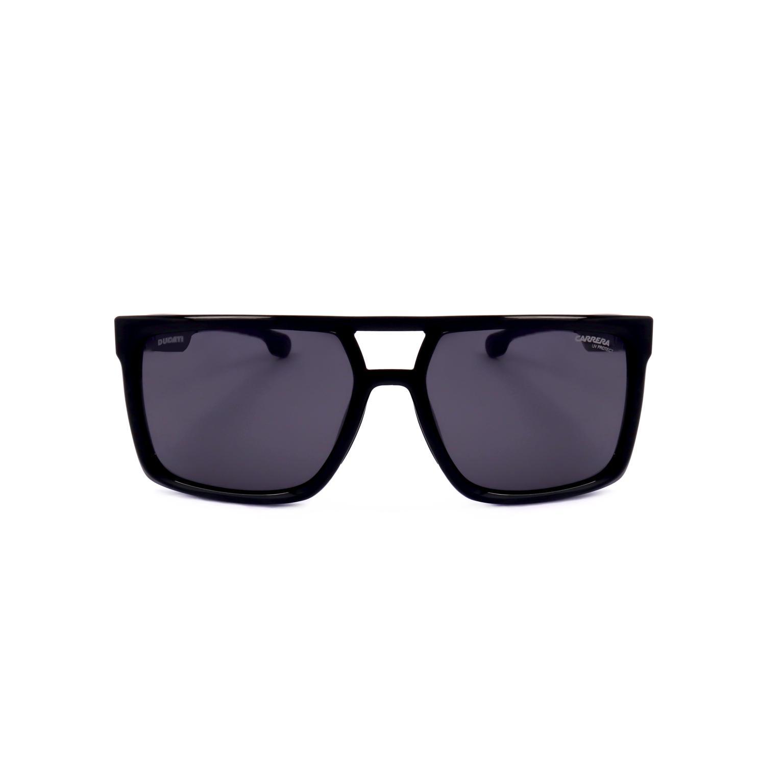Gli occhiali di CARRERA presentano una silhouette squadrata e decisa, con una montatura dal profilo marcato che ne sottolinea l'estetica contemporanea. Le lenti, ampie e avvolgenti, misurano 58 mm di diametro con un ponte di 17 mm, offrendo una copertura visiva considerevole e uno stile distintivo.