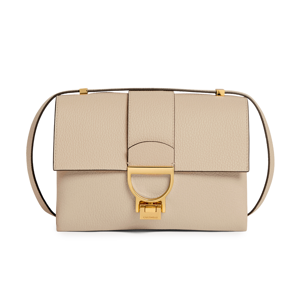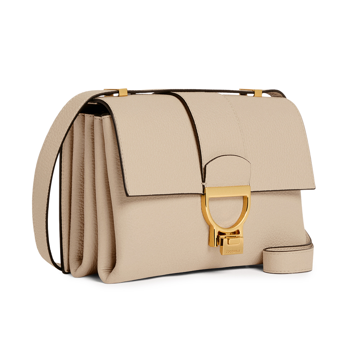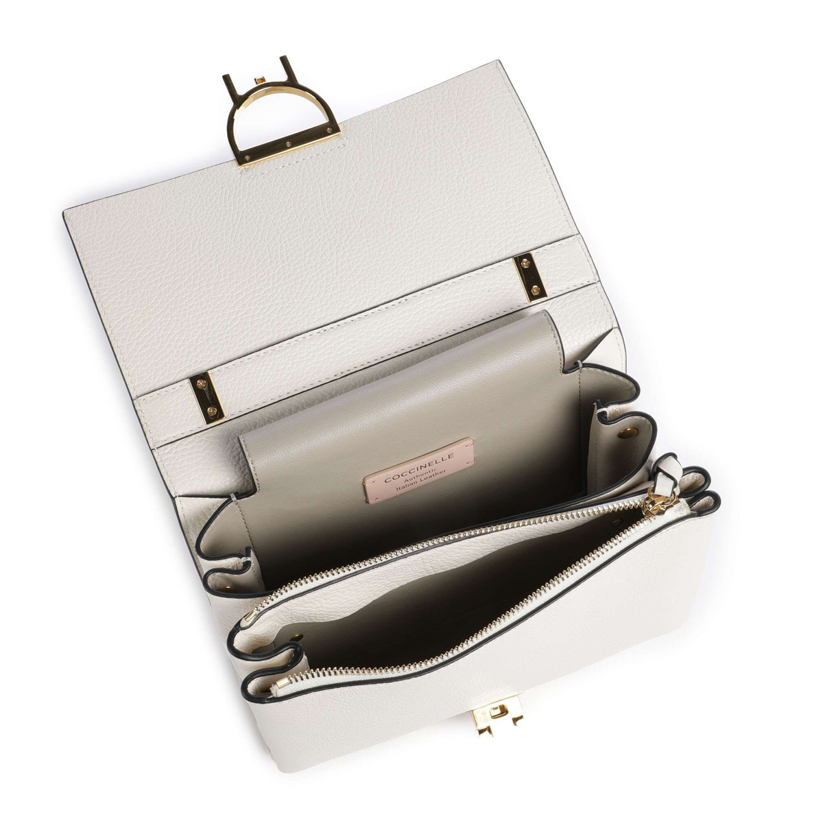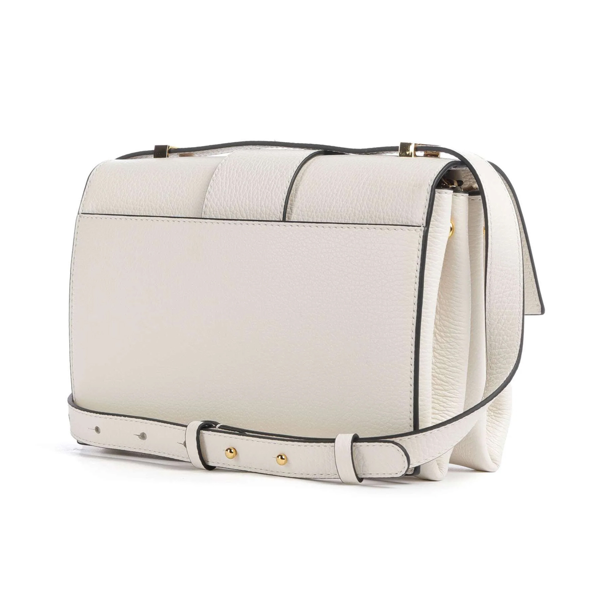 Questa borsa a tracolla Arlettis di Coccinelle è un esempio di geometria rigorosa applicata all'accessorio contemporaneo. La chiusura metallica frontale a forma di staffa domina la silhouette strutturata, conferendo un carattere distintivo a questo modello mentre i passanti superiori ne definiscono il profilo.