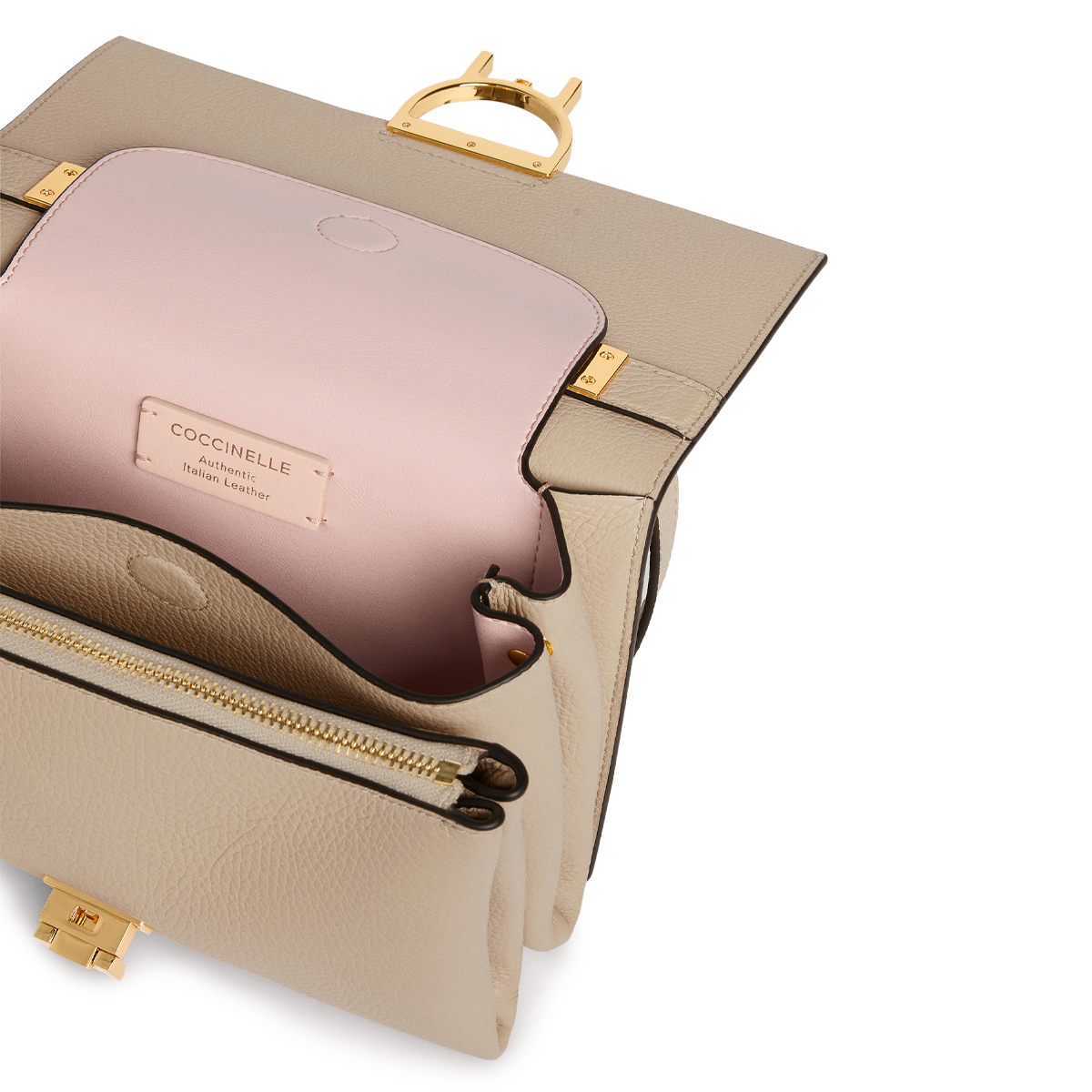 BORSA A TRACOLLA, DA DONNA, TINTA UNITA, CON LOGO, HANDBAG GRAINED LEATHER / SANDSHELL