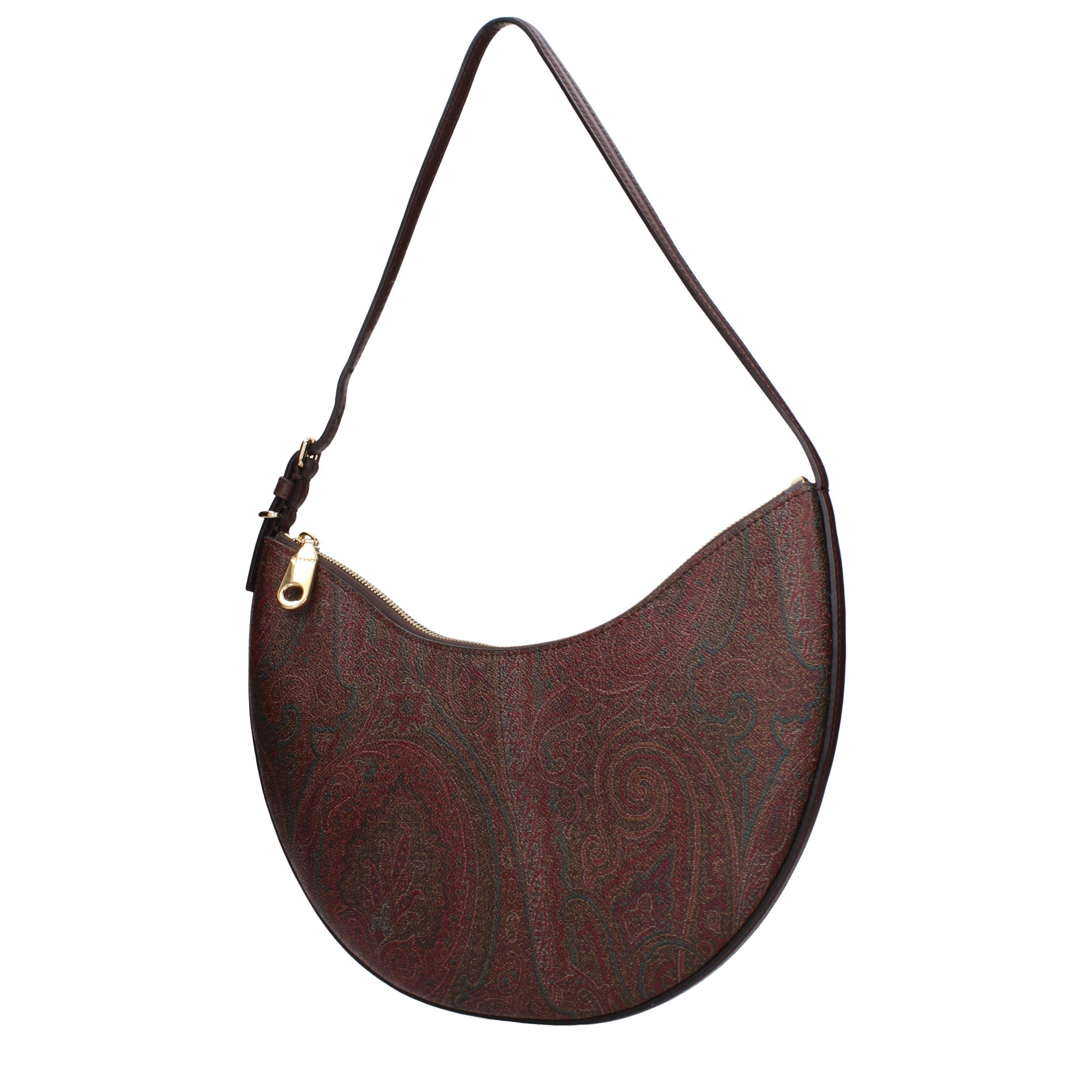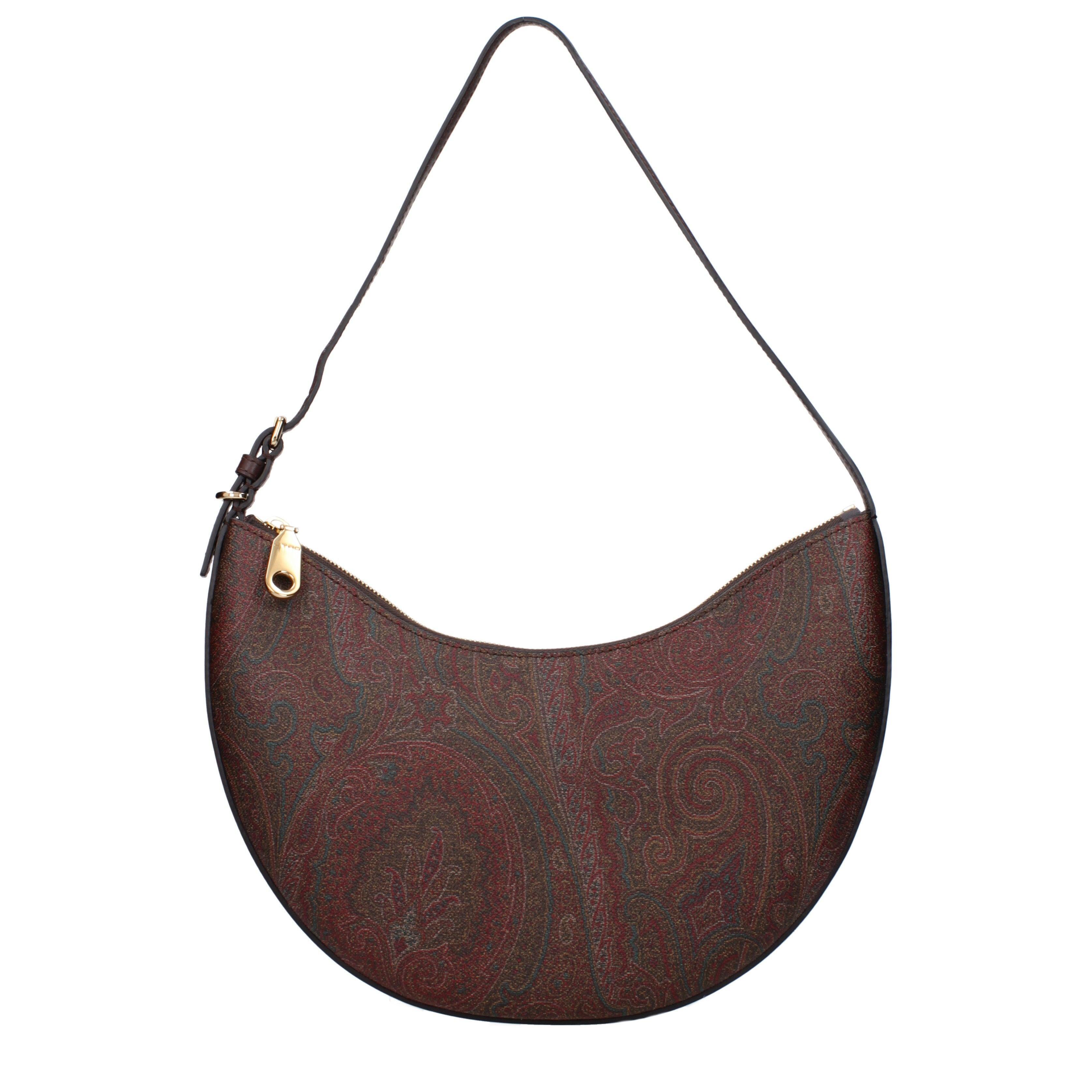 ETRO presenta questa borsa a spalla caratterizzata da una silhouette a mezzaluna distintiva che valorizza i volumi curvi tipici della tradizione artigianale. La struttura semirigida esalta il motivo ornamentale della maison, offrendo un'estetica sofisticata e immediatamente riconoscibile per il mercato della pelletteria internazionale. La curvatura inferiore e il profilo sottile assicurano una vestibilità ergonomica e discreta sulla spalla.