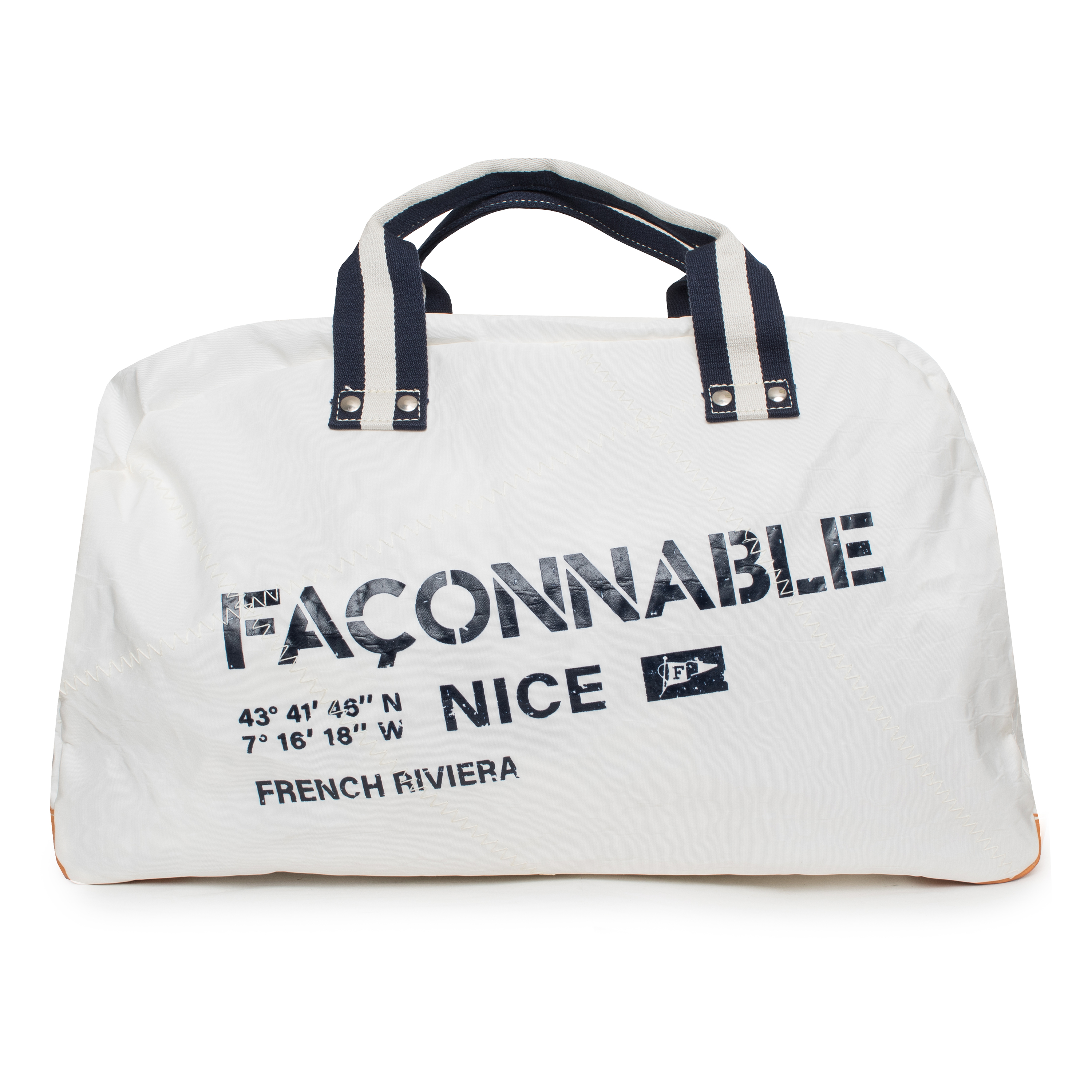 Questo borsone SAIL BAG di FACONNABLE è un articolo di valigeria che riflette un'attenzione rigorosa per la funzionalità e l'estetica. Interamente fabbricato in Italia, il modello presenta una struttura rinforzata da cuciture a zigzag che percorrono il corpo del borsone, evocando la resistenza delle vele nautiche. I manici sono assicurati con rivetti metallici circolari, garantendo una stabilità superiore per il trasporto di carichi voluminosi.