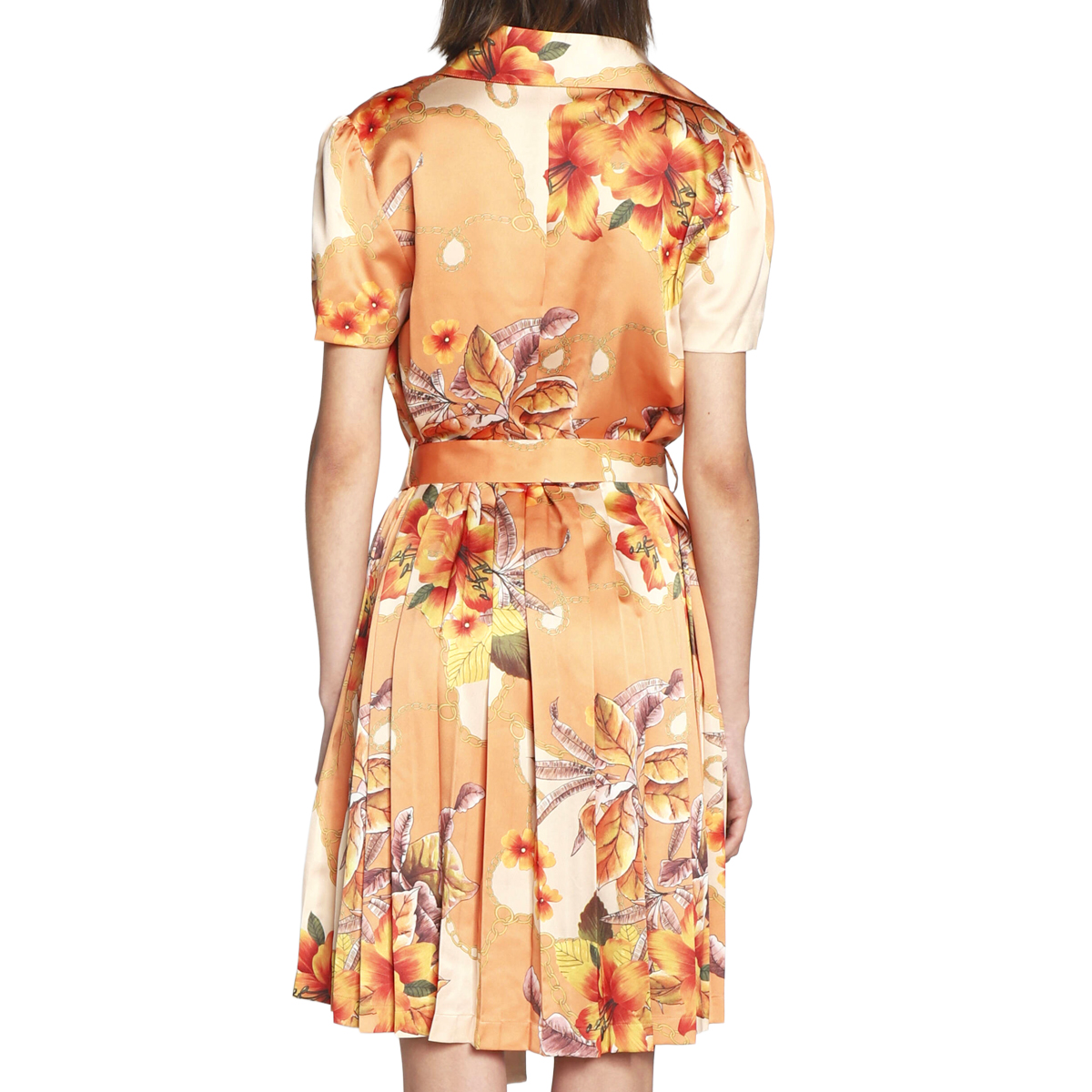 ABITO CORTO, DA DONNA, MANICA CORTA, FANTASIA, MULTICOLORE, CON LOGO, CHIUSURA BOTTONI, CON CINTURA