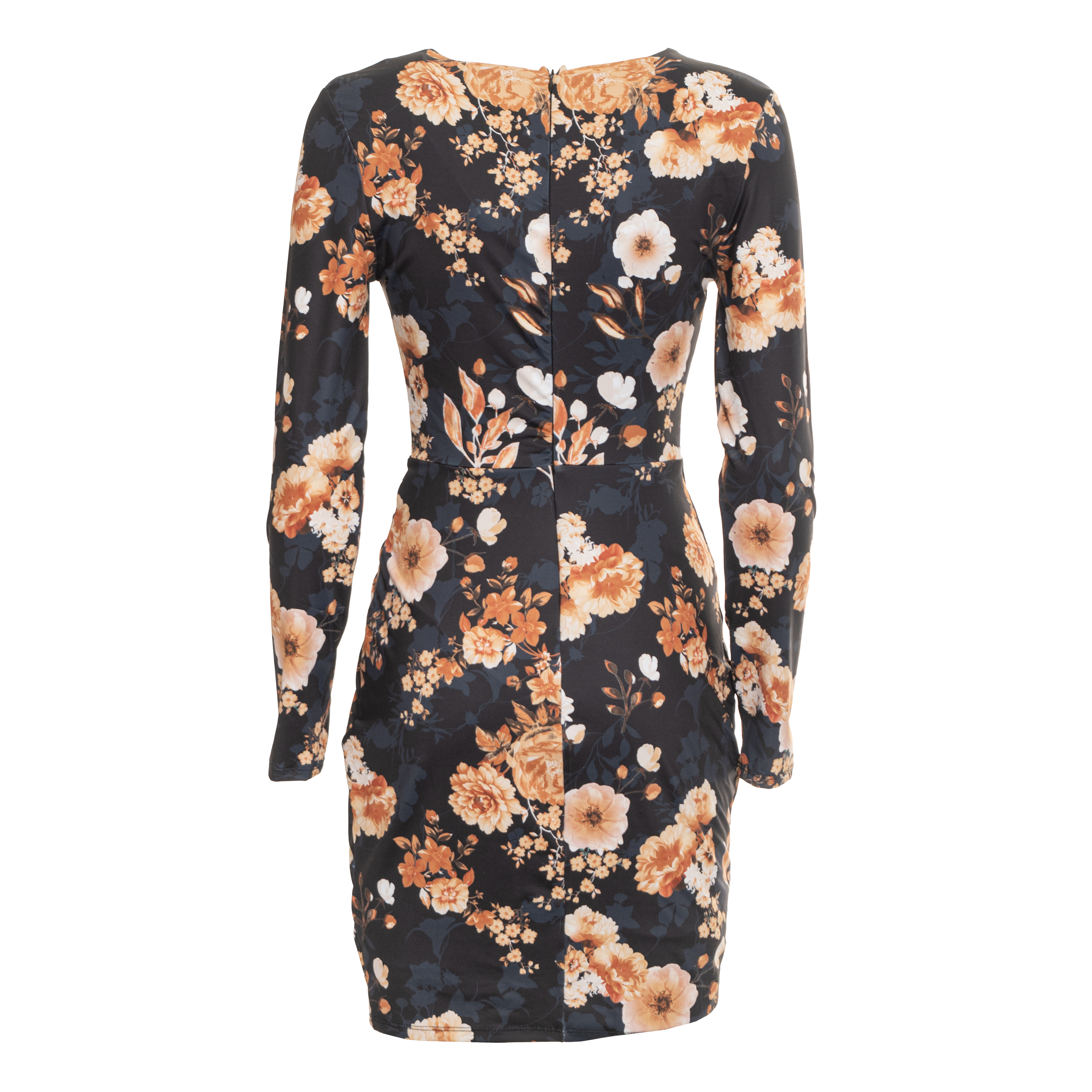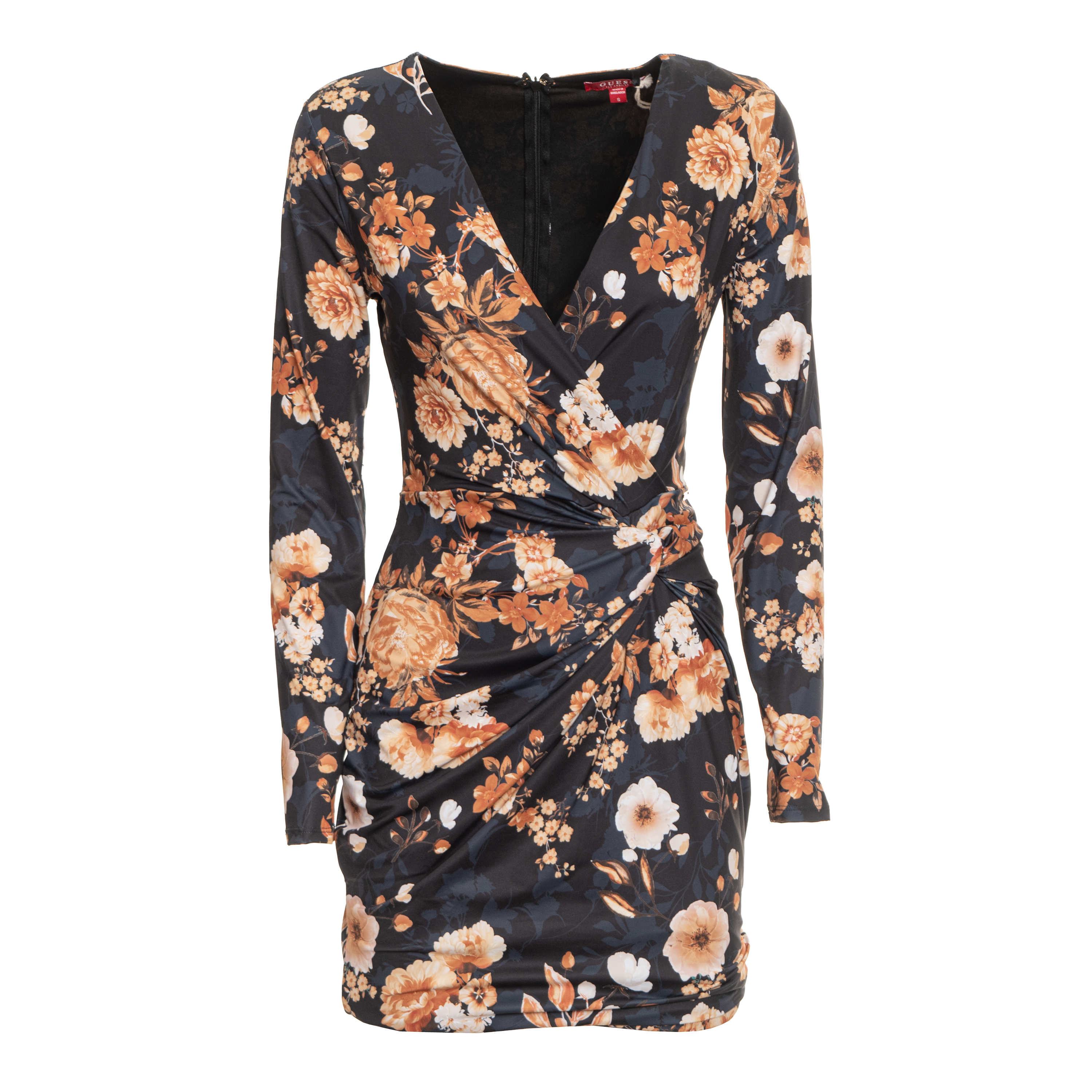 ABITO AL GINOCCHIO, DA DONNA, SCOLLO A V, MANICA LUNGA, A FIORI, FANTASIA, CON LOGO, CHIUSURA ZIP, LS JENNA PRINTED DRESS
