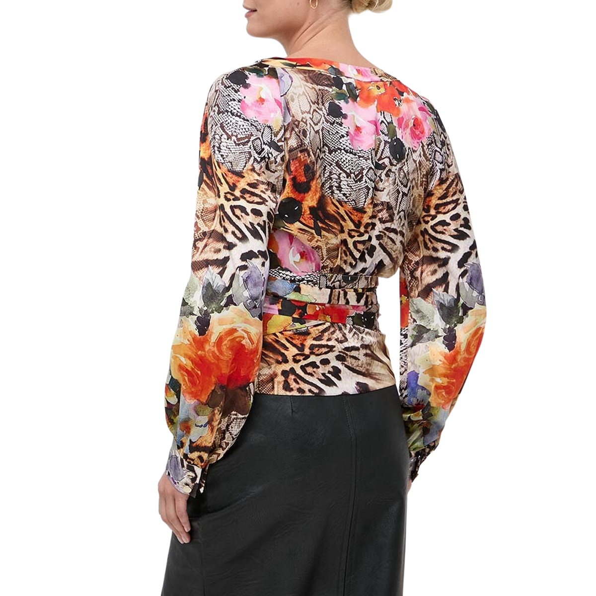 BLUSA, DA DONNA, MANICA LUNGA, A FIORI, PITONE, COULISSE IN VITA, CON LOGO-WILD FLOWER BLOUSE