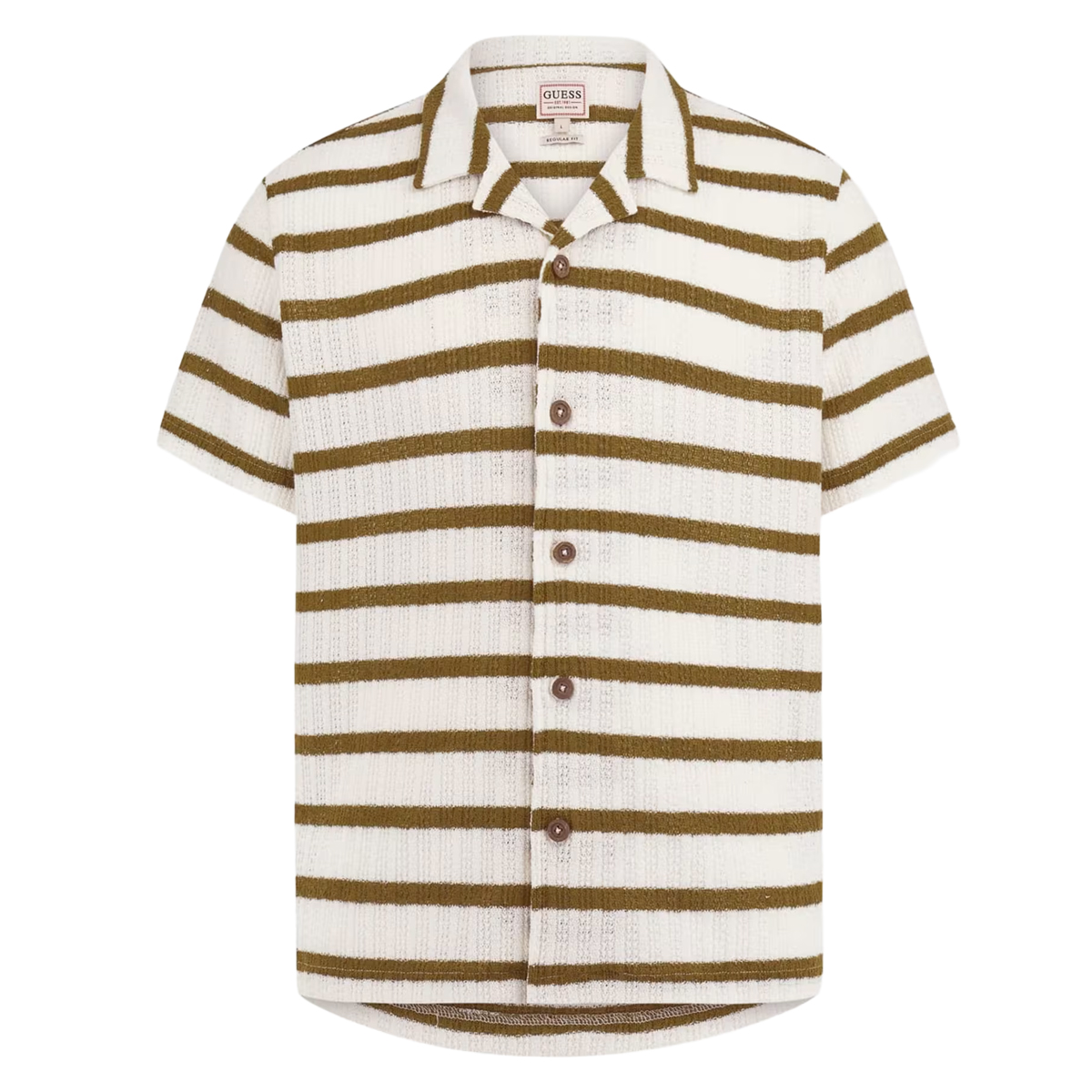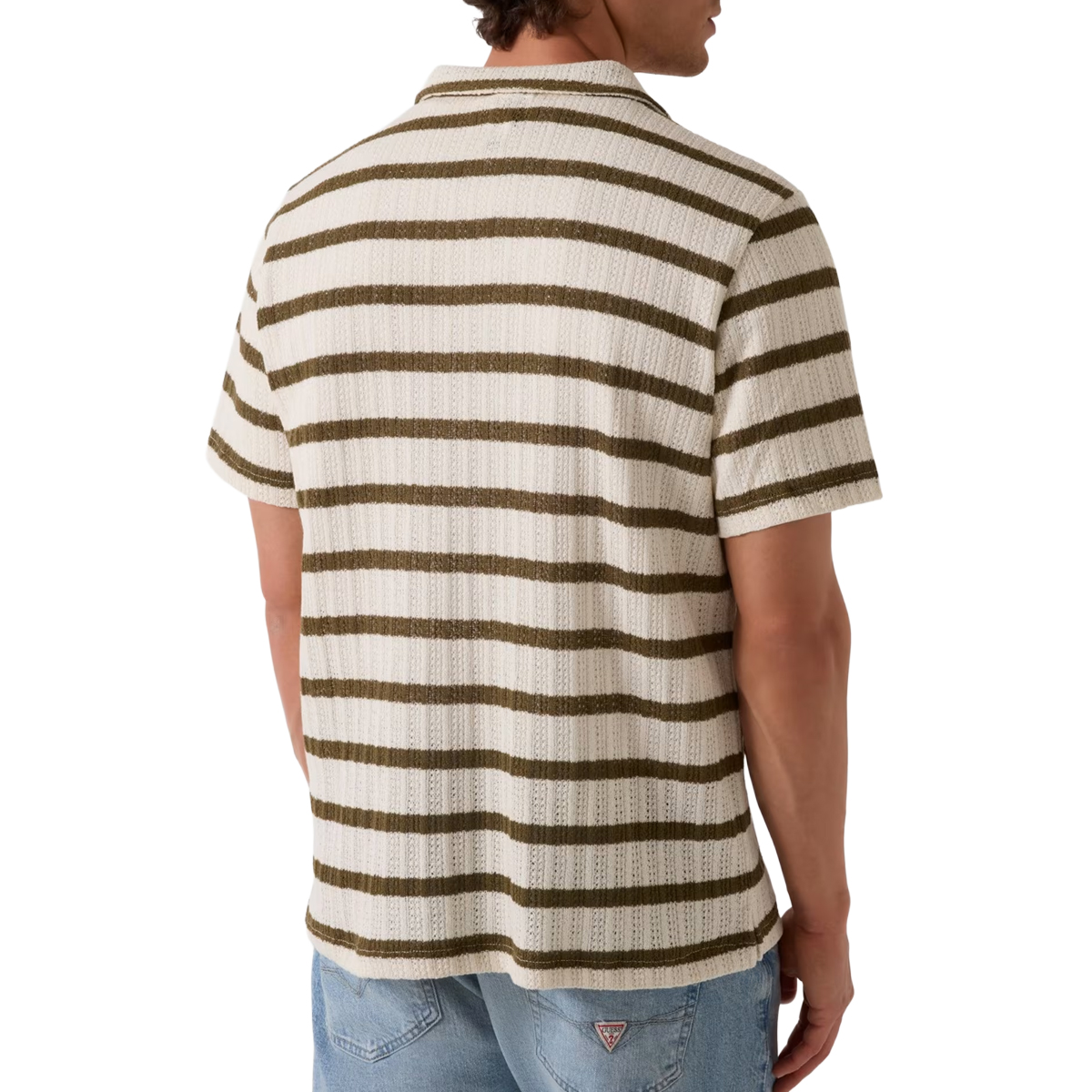 Questa camicia SS ELON TEXTURED STRIPE SHIRT di GUESS è un capo dall'estetica raffinata, caratterizzato da una particolare lavorazione superficiale che ne esalta il carattere. Il design a manica corta presenta un colletto classico a rever che conferisce un tono distinto e contemporaneo. La chiusura frontale con bottoni si integra armoniosamente con il motivo a righe orizzontali, mettendo in risalto la precisione della manifattura e la pulizia del taglio.