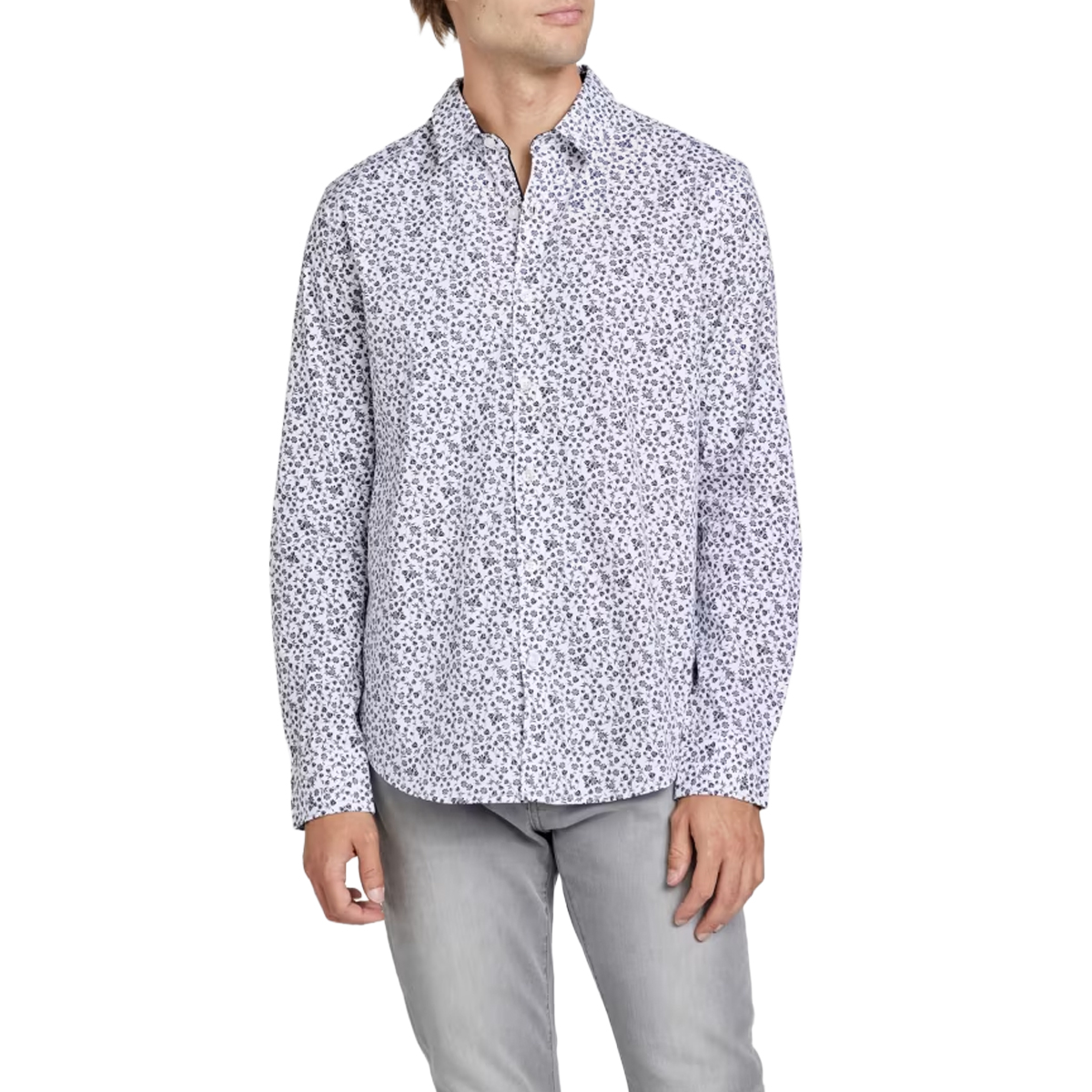 CAMICIA A FIORI, DA UOMO, COLLO CLASSICO, SLIM FIT, MANICA LUNGA, BICOLORE, CON LOGO, CHIUSURA BOTTONI