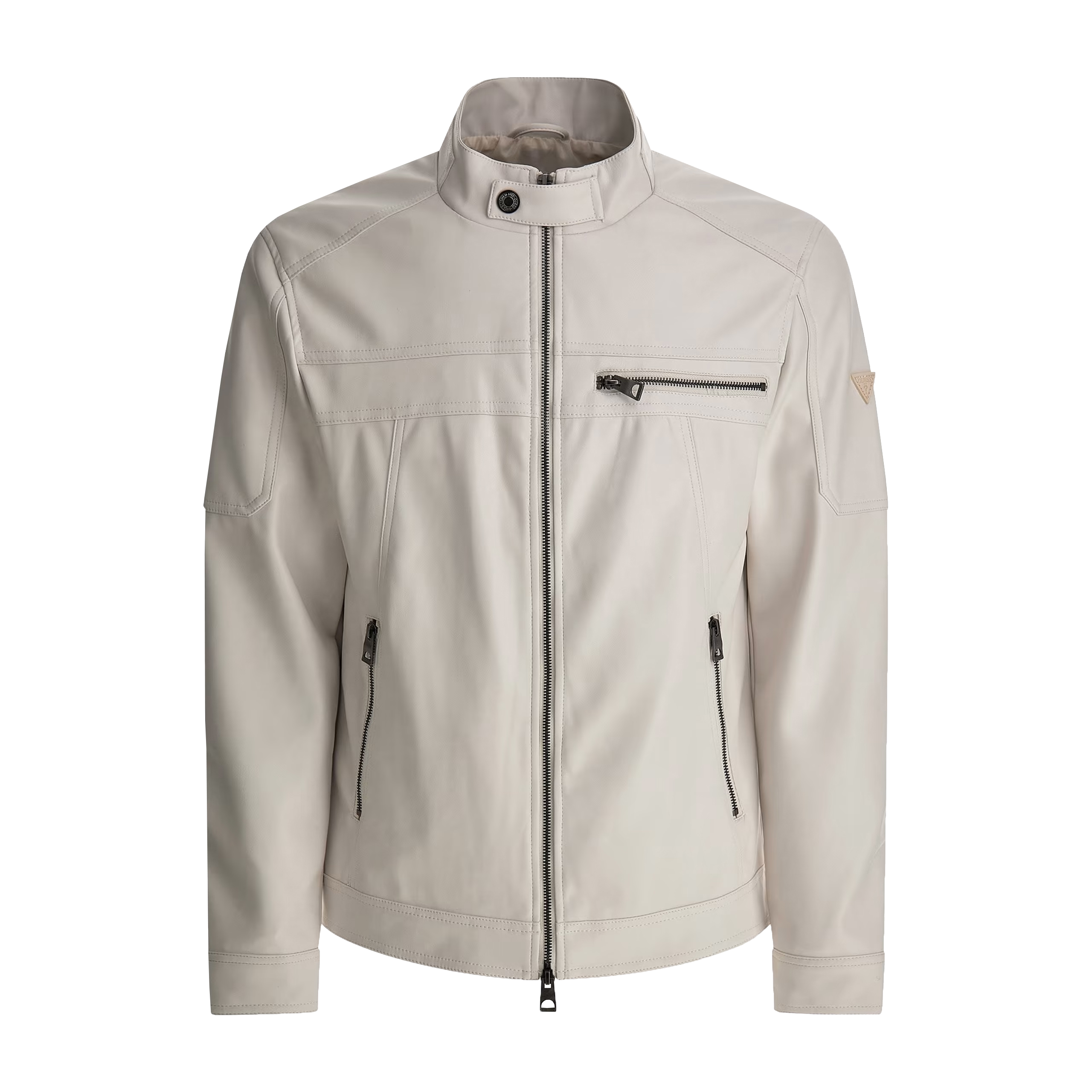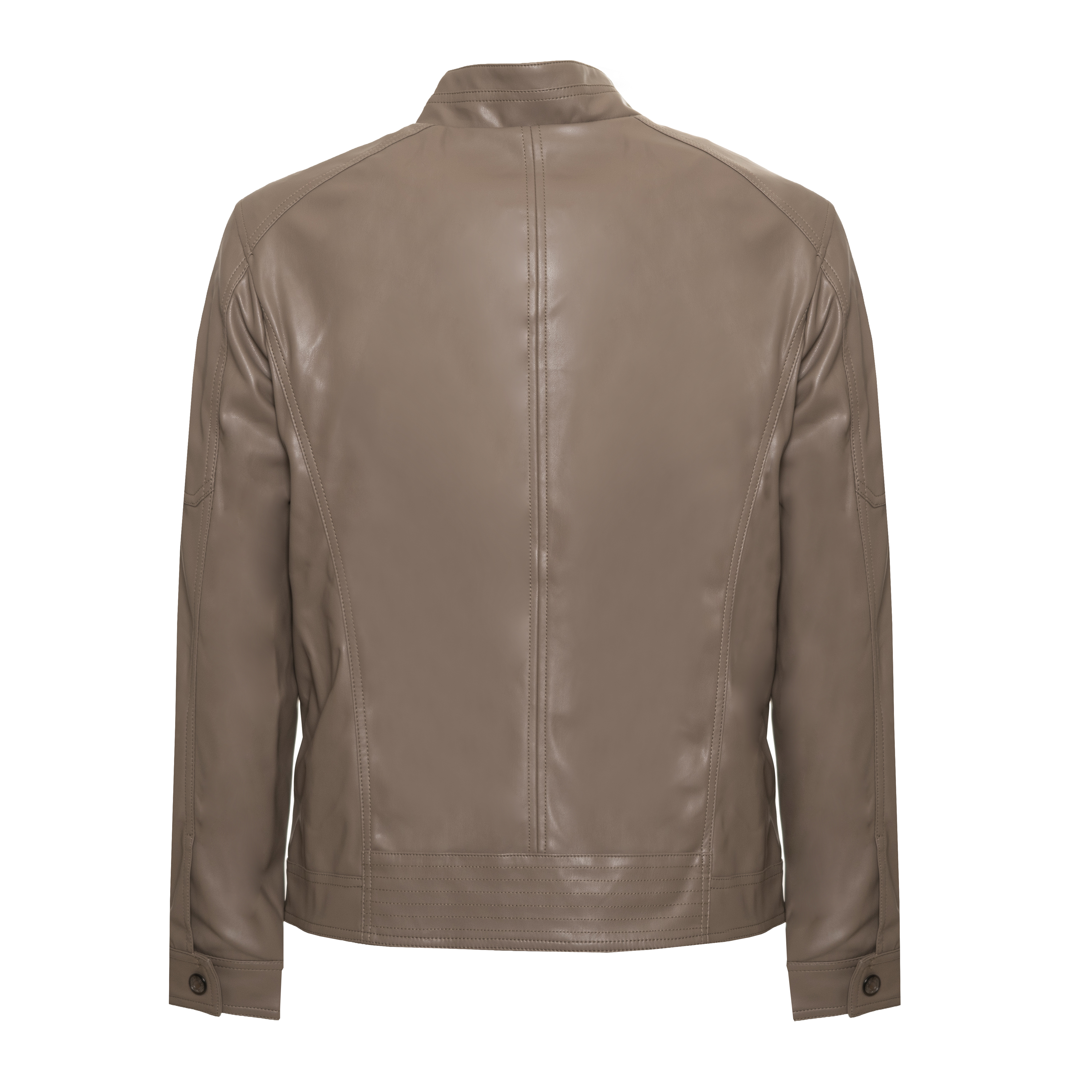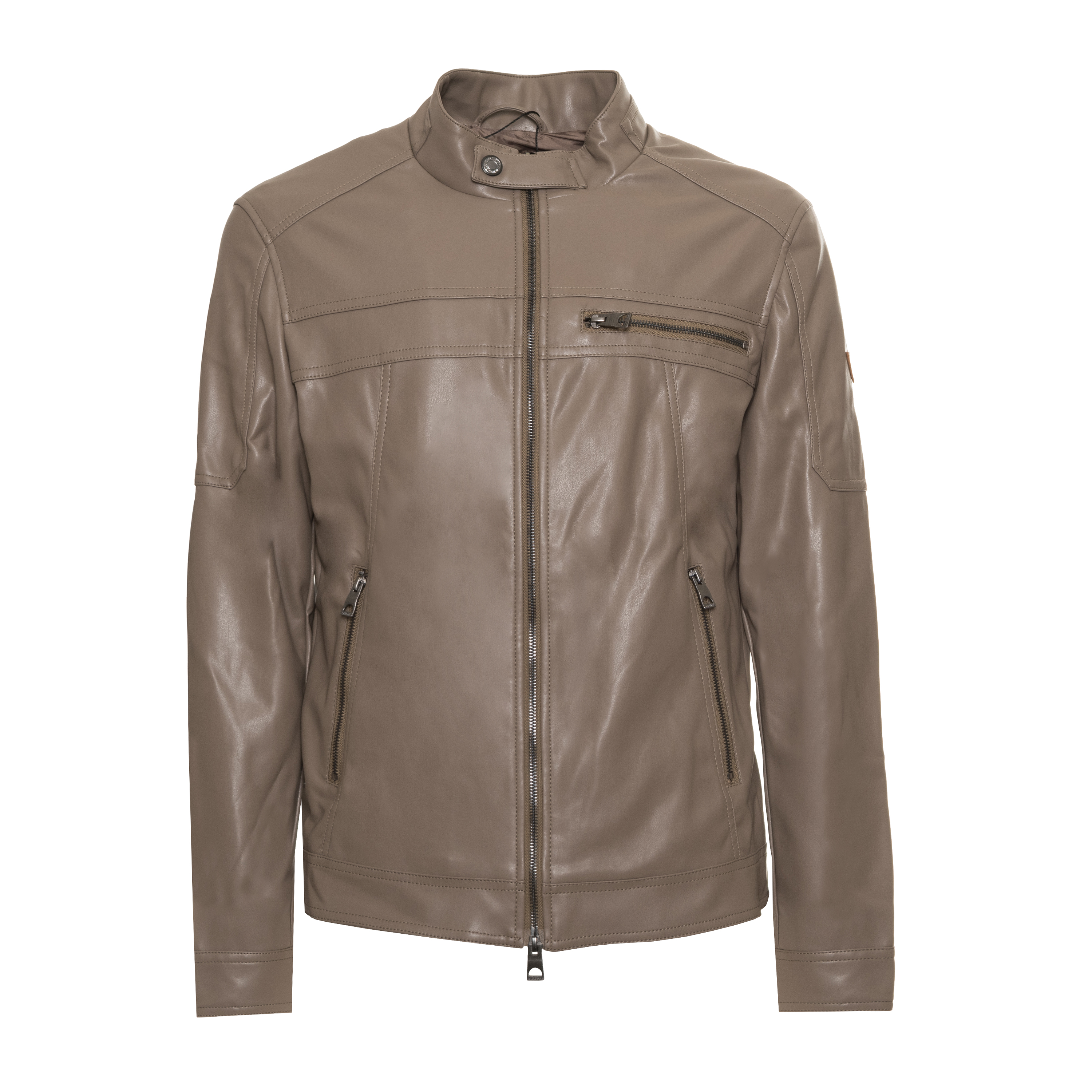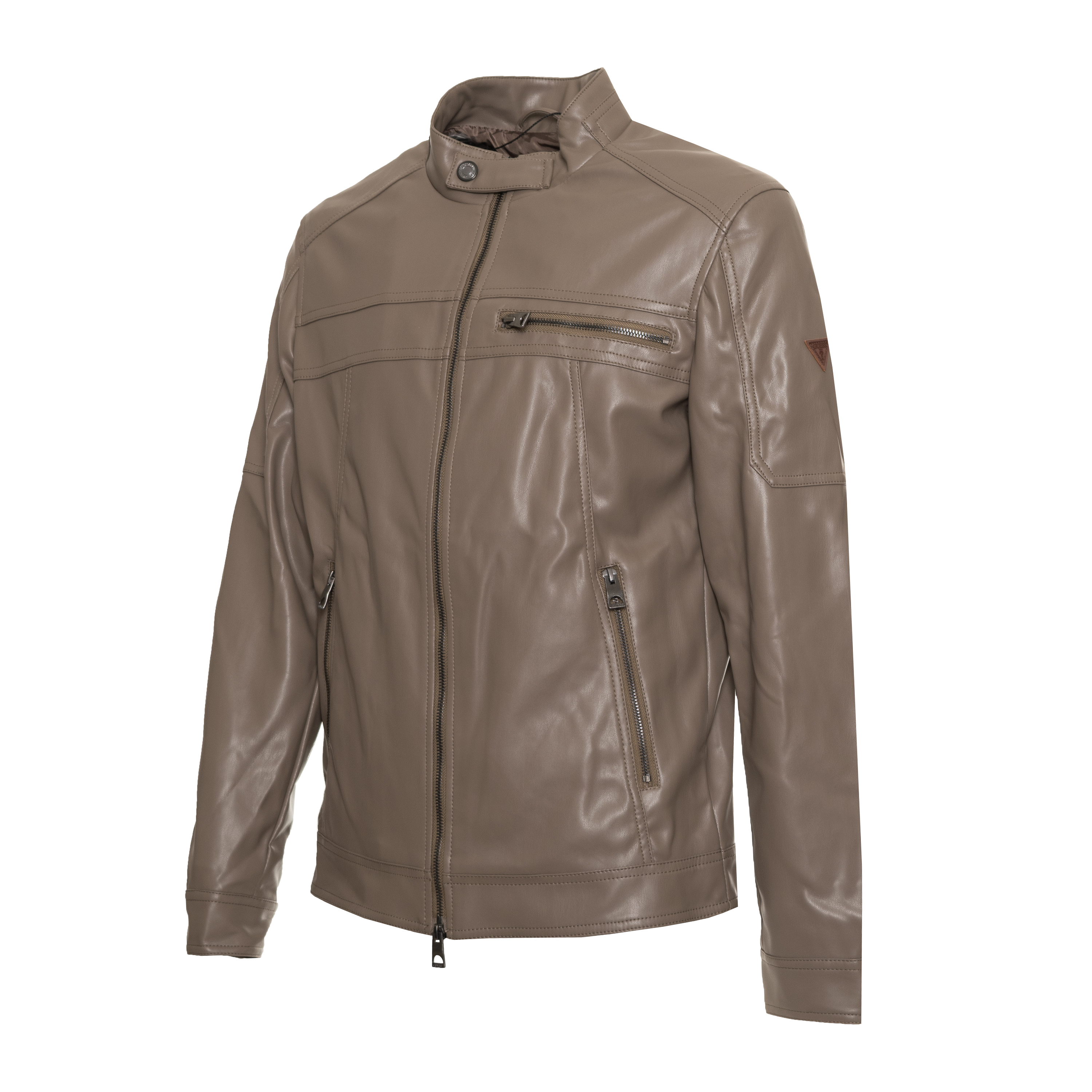 GIACCA DI PELLE, DA UOMO, TASCHE, MANICA LUNGA, TINTA UNITA, CON LOGO, CHIUSURA ZIP