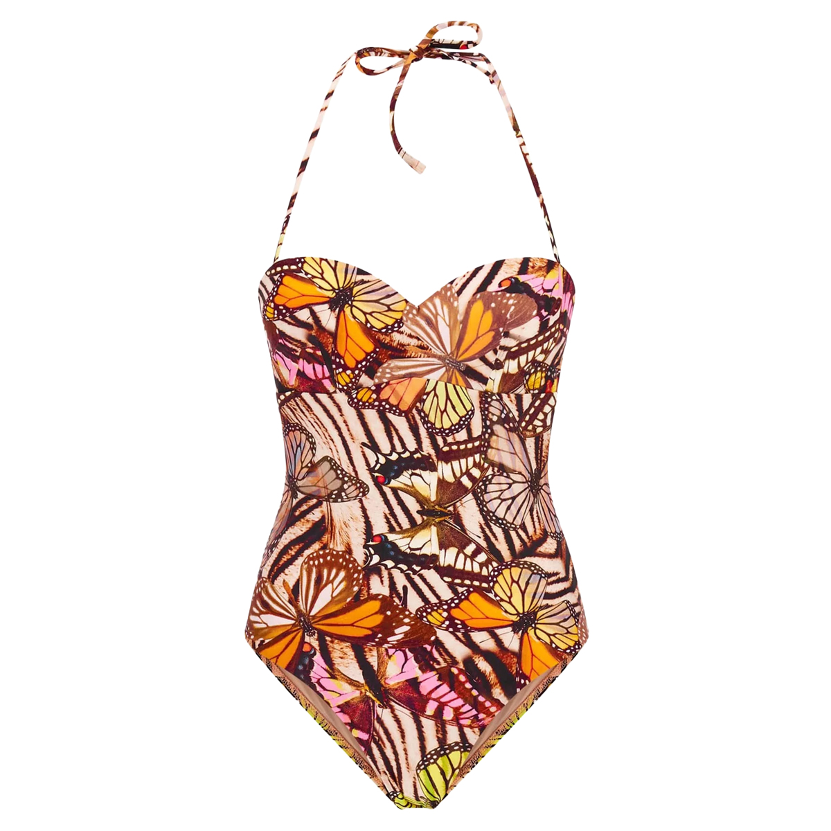 Questo costume intero di GUESS presenta una silhouette scolpita e una stampa grafica vivace. Il design è caratterizzato da una scollatura a cuore con coppe preformate che valorizzano il busto, mentre il laccetto sottile da annodare dietro al collo assicura una vestibilità regolabile. La sgambatura alta slancia otticamente la figura, conferendo al capo un'estetica sofisticata.