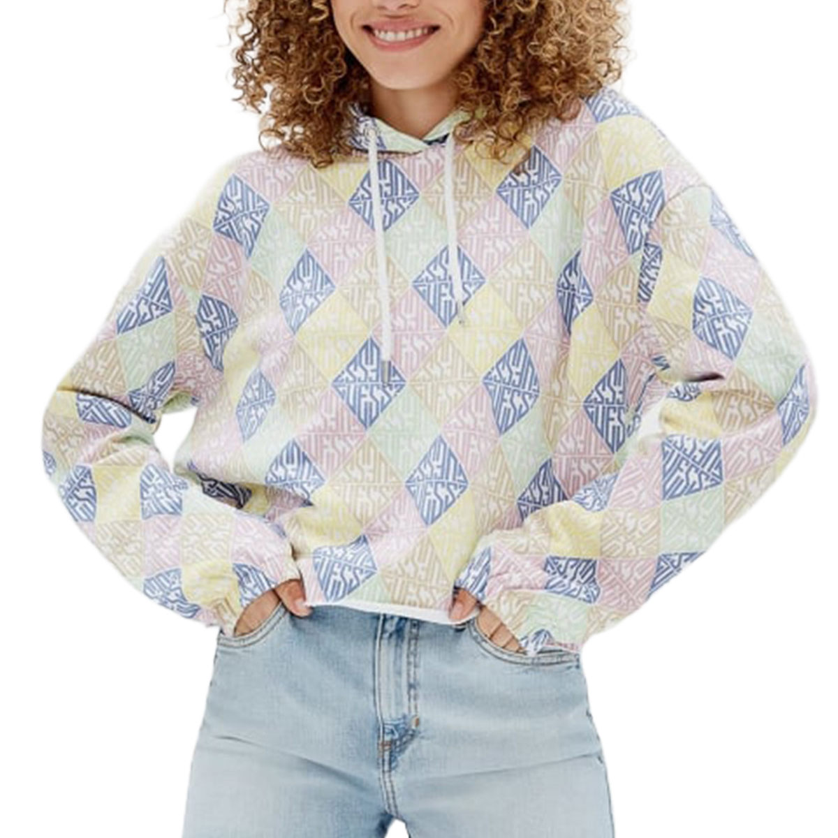 FELPA, DA DONNA, CAPPUCCIO CON COULISSE, MANICA LUNGA, MULTICOLORE, LOGO STAMPATO - GO MINA AOP HOODIE