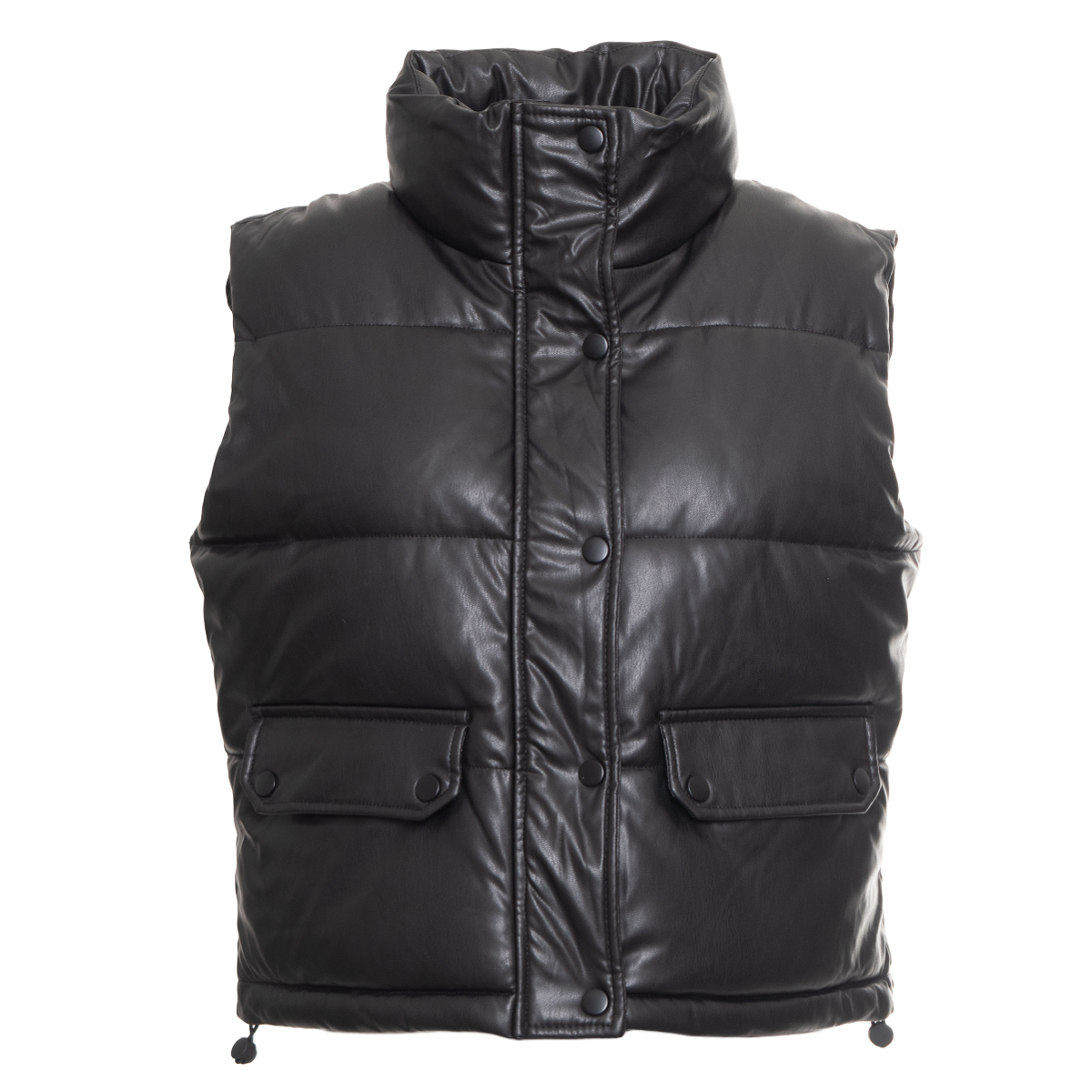 SMANICATO, DA DONNA, TASCHE, TINTA UNITA, CON LOGO, CHIUSURA ZIP