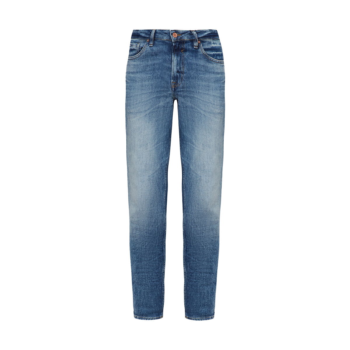 JEANS, DA UOMO, CINQUE TASCHE, TINTA UNITA, CON LOGO, CHIUSURA ZIP E BOTTONE