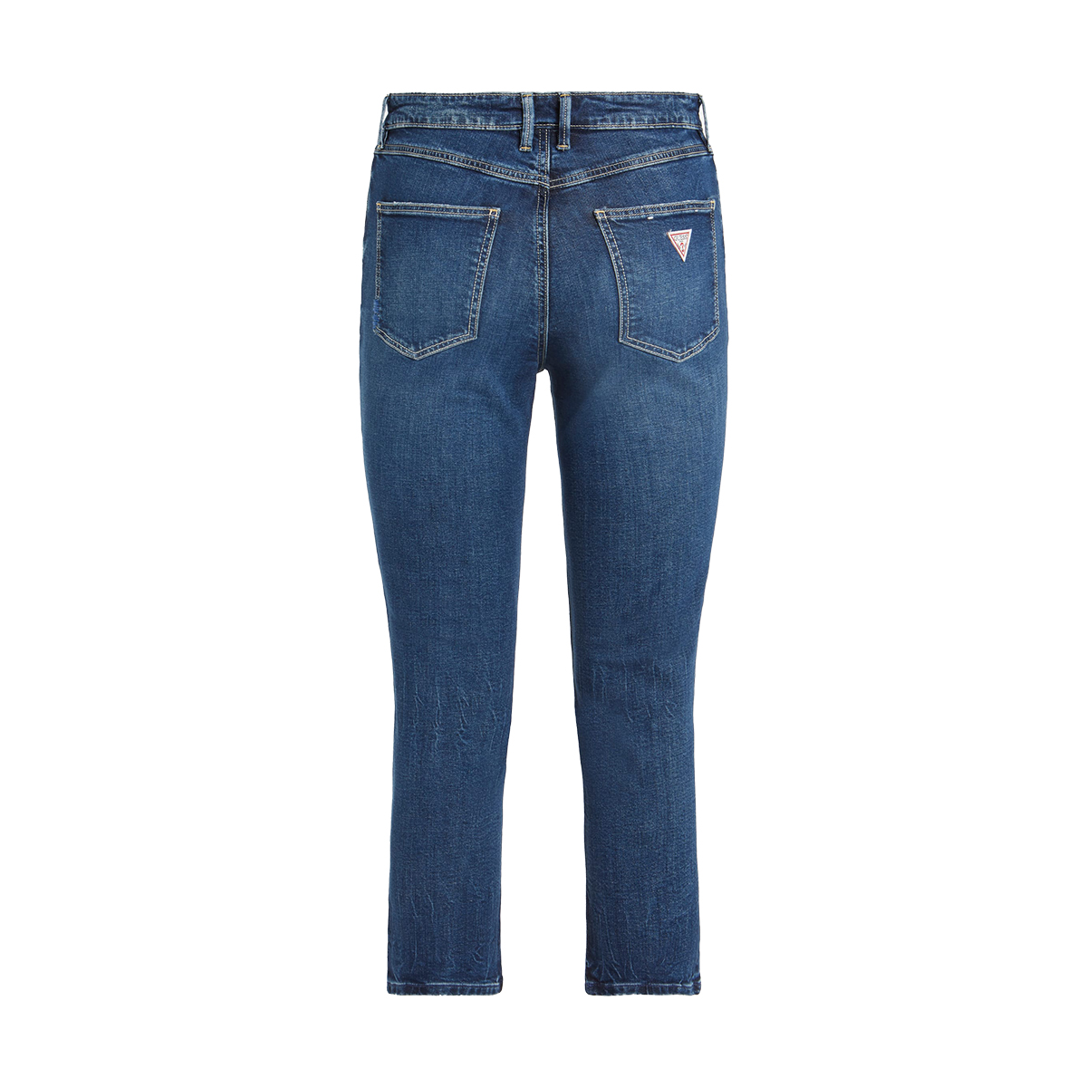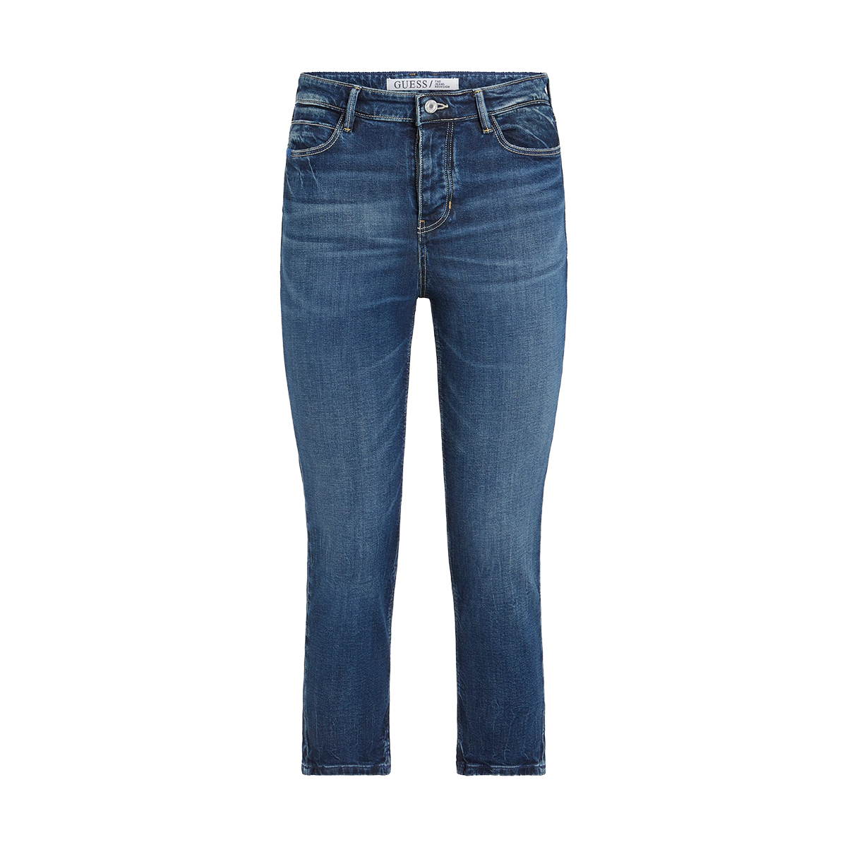 JEANS CAPRI, DA DONNA, CINQUE TASCHE, TINTA UNITA, CON LOGO, CHIUSURA BOTTONI