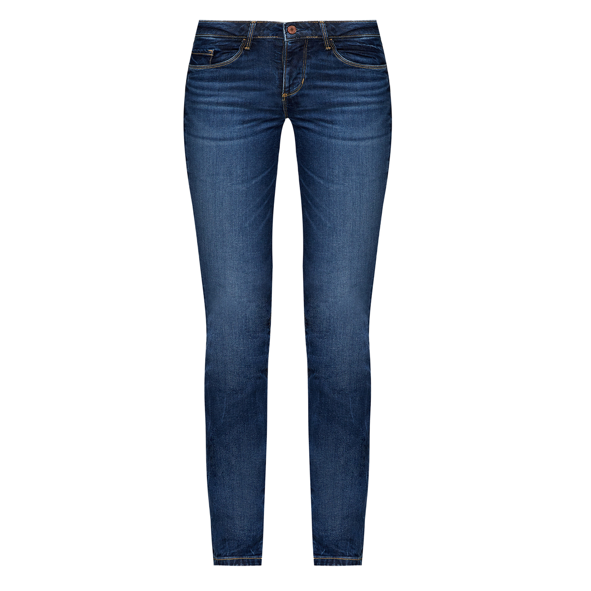 JEANS, DA DONNA, CINQUE TASCHE, TINTA UNITA, CON LOGO, CHIUSURA BOTTONI