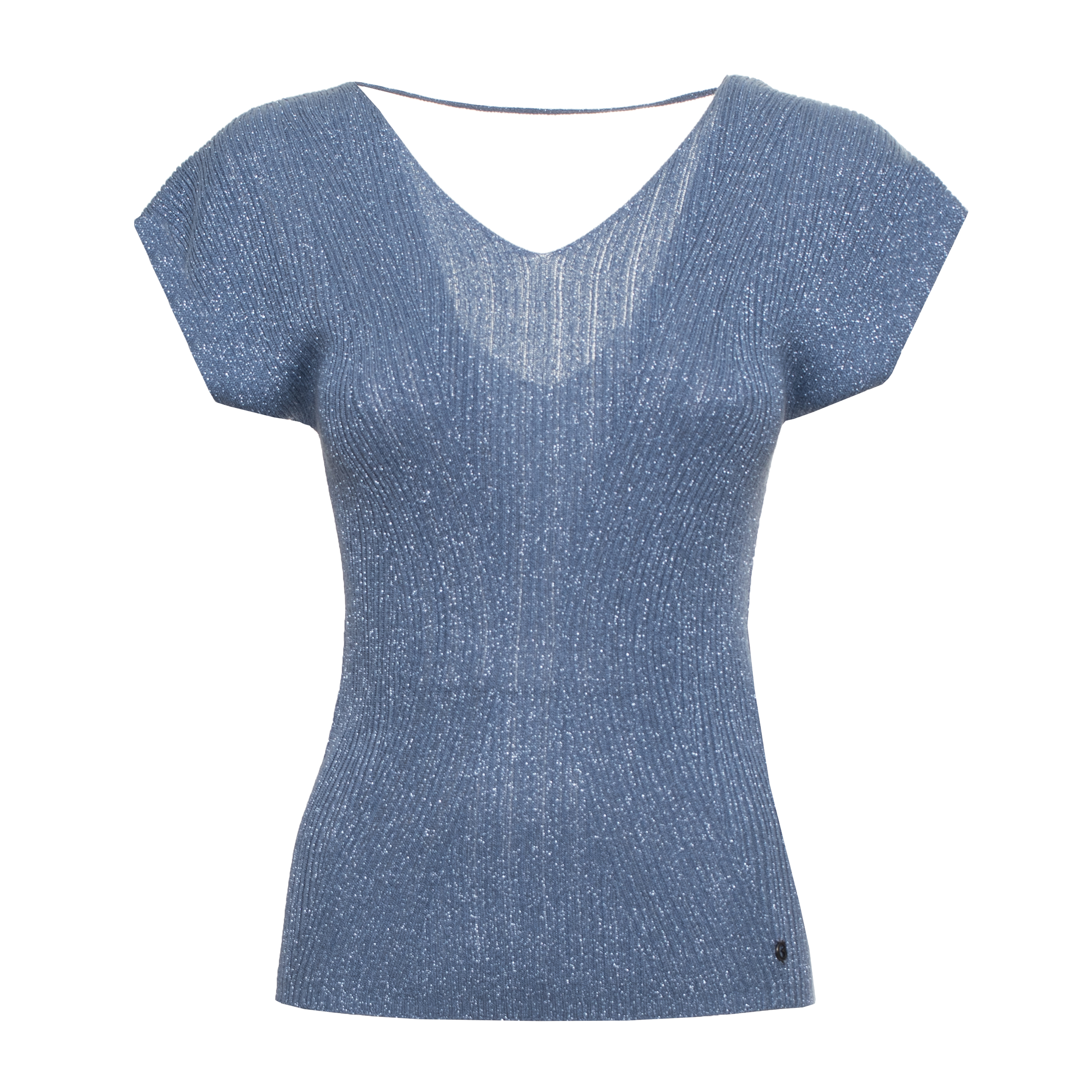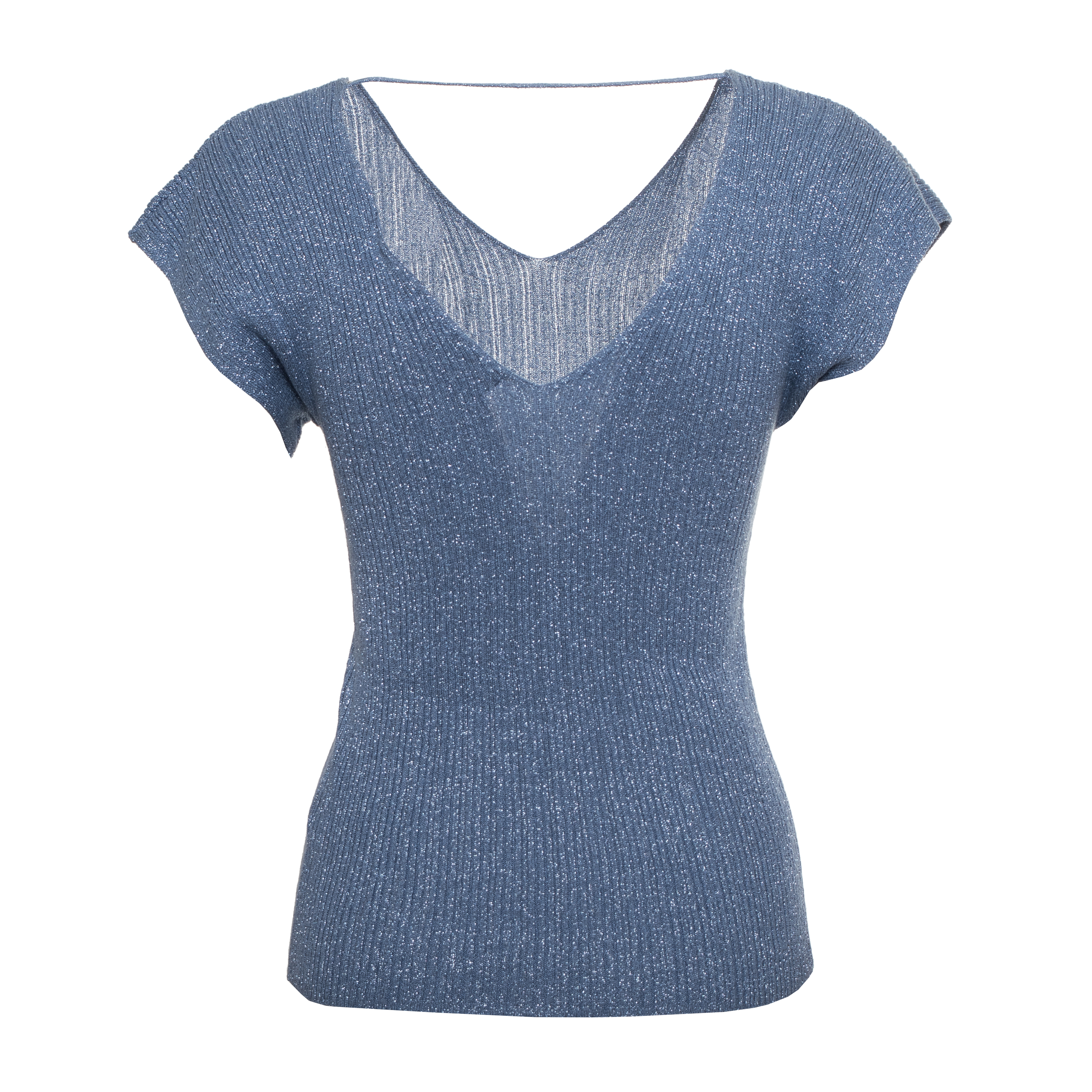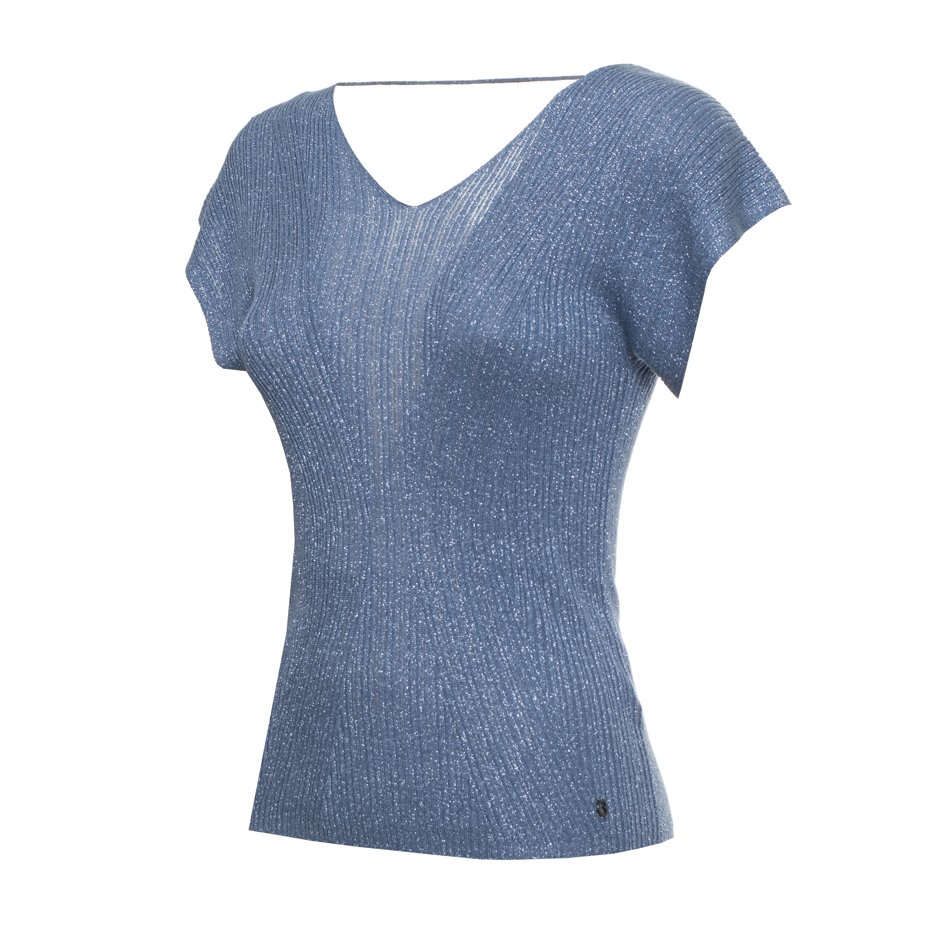 MAGLIA, DA DONNA, SCOLLO A V, MANICA CORTA, TINTA UNITA, CON LOGO-SOLANGE VN SS SWTR