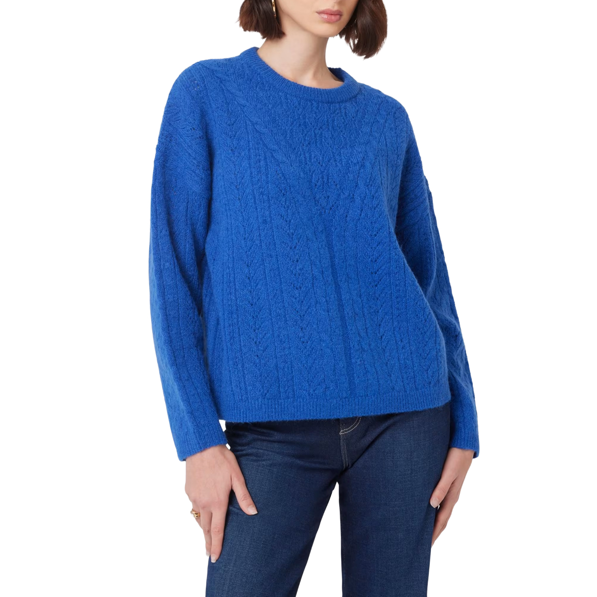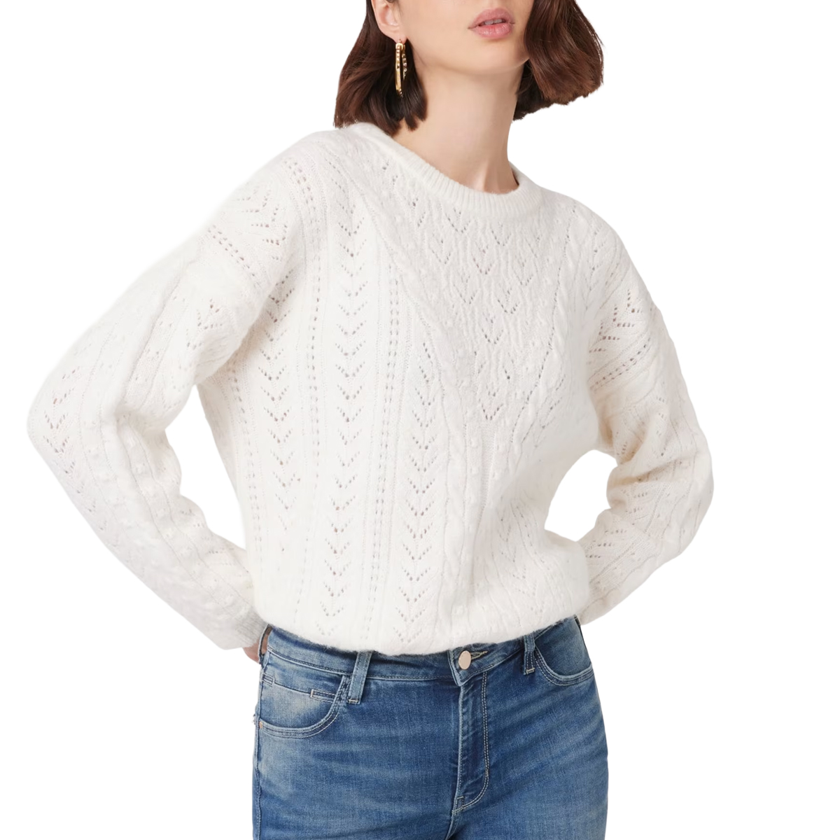 Questa maglia LS CN SYLVIE POINTELLE SWTR di GUESS è un esempio di raffinata maglieria contemporanea caratterizzata da una lavorazione traforata pointelle. La silhouette presenta una linea morbida con maniche lunghe arricchite da motivi a treccia che donano volume e tridimensionalità al capo. Il girocollo rifinito a costine assicura una vestibilità stabile, mentre i bordi elastici definiscono la struttura con precisione.
