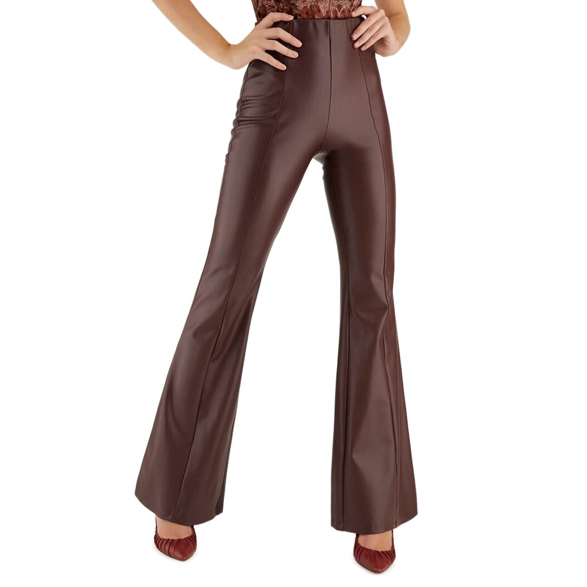 PANTALONI A CAMPANA, DA DONNA, TINTA UNITA, CON LOGO, CHIUSURA ZIP E BOTTONE-SABELLLA PU FLARE