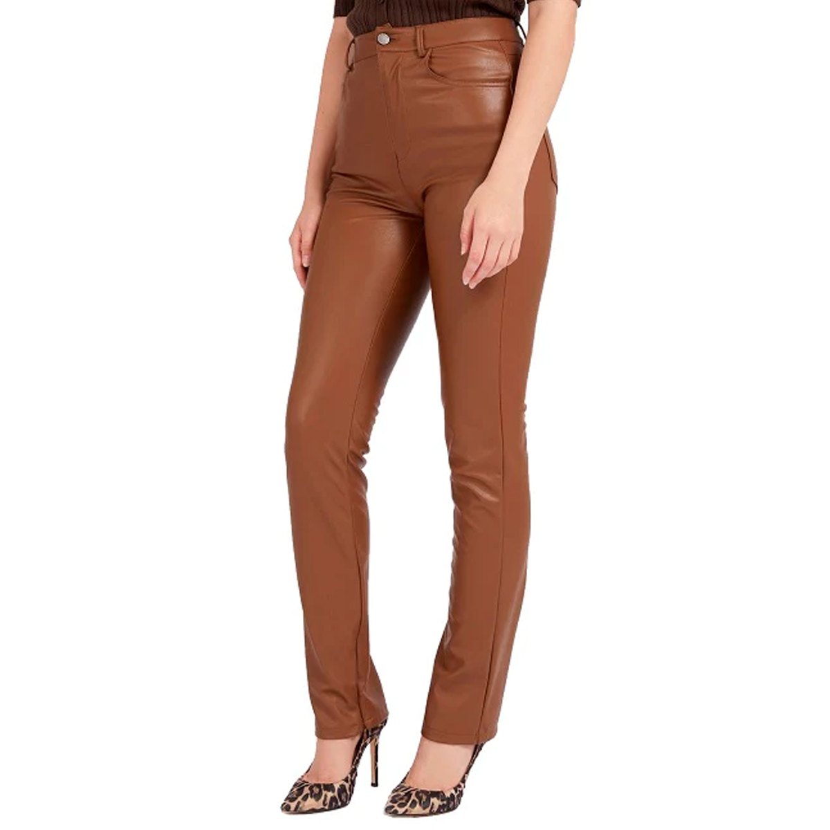 PANTALONI DI PELLE, DA DONNA, CINQUE TASCHE, TINTA UNITA, CON LOGO, CHIUSURA ZIP E BOTTONI