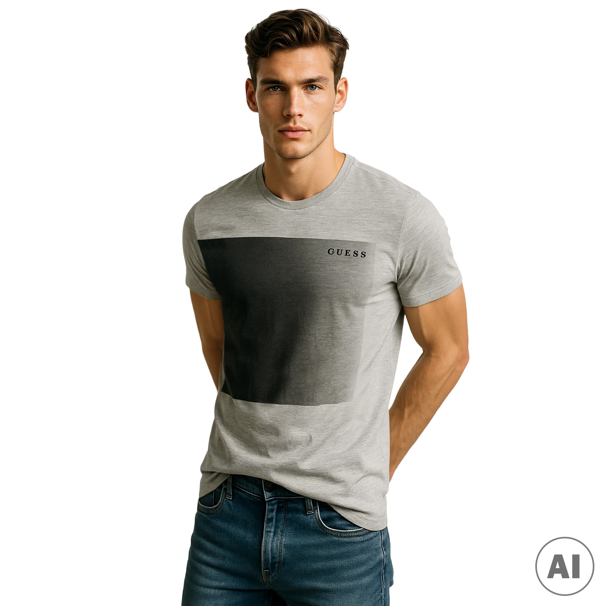 T-SHIRT, DA UOMO, GIROCOLLO, MANICA CORTA, BICOLORE, CON LOGO