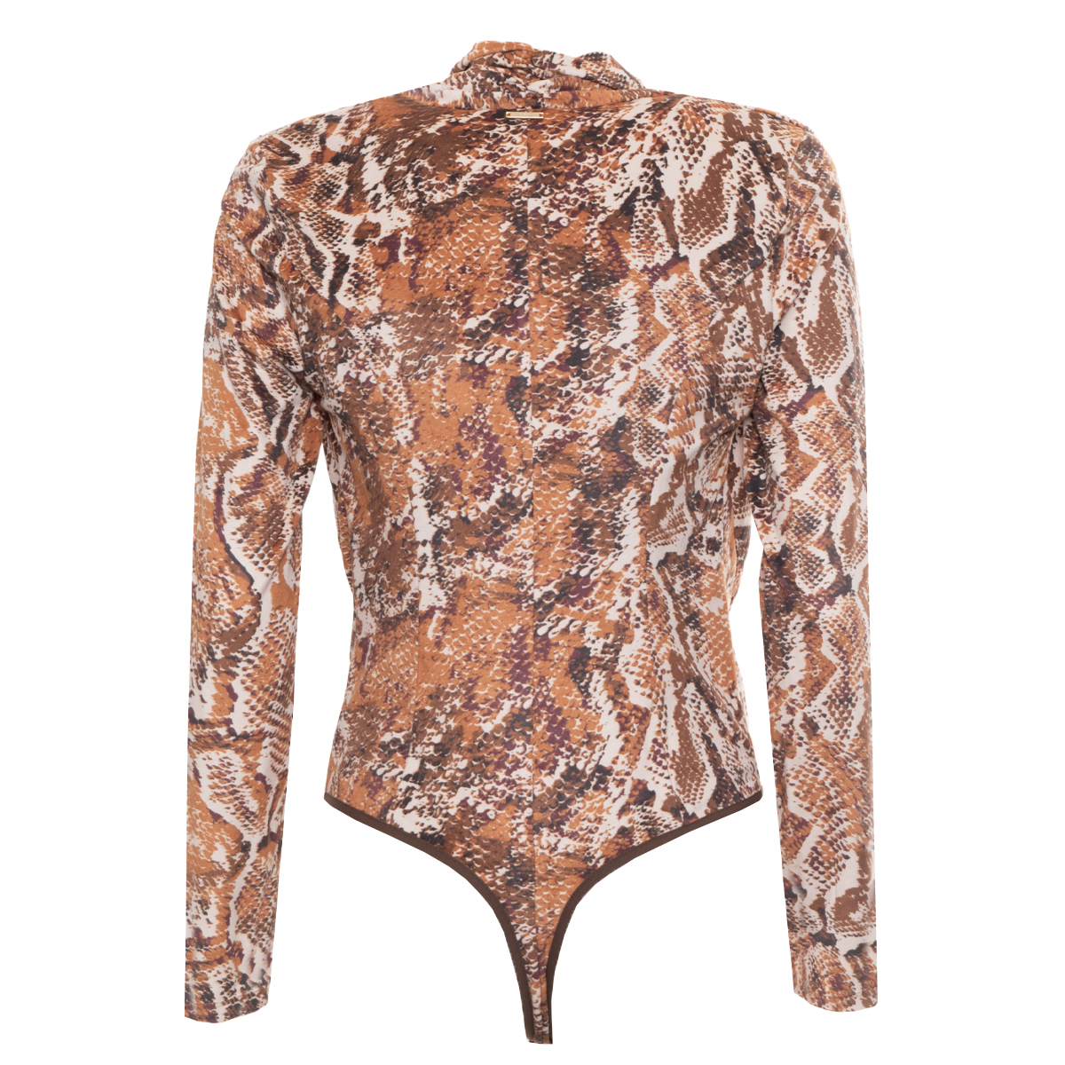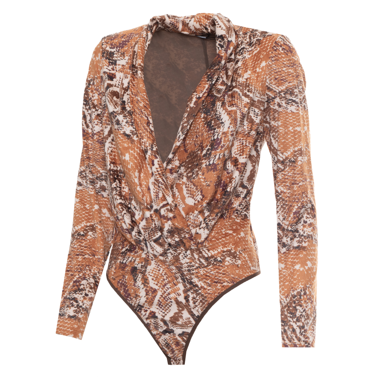 BODY, DA DONNA, SCOLLO A V, MANICA LUNGA, FANTASIA, MULTICOLORE, CON LOGO, HUDSON BODYSUIT PRINTED