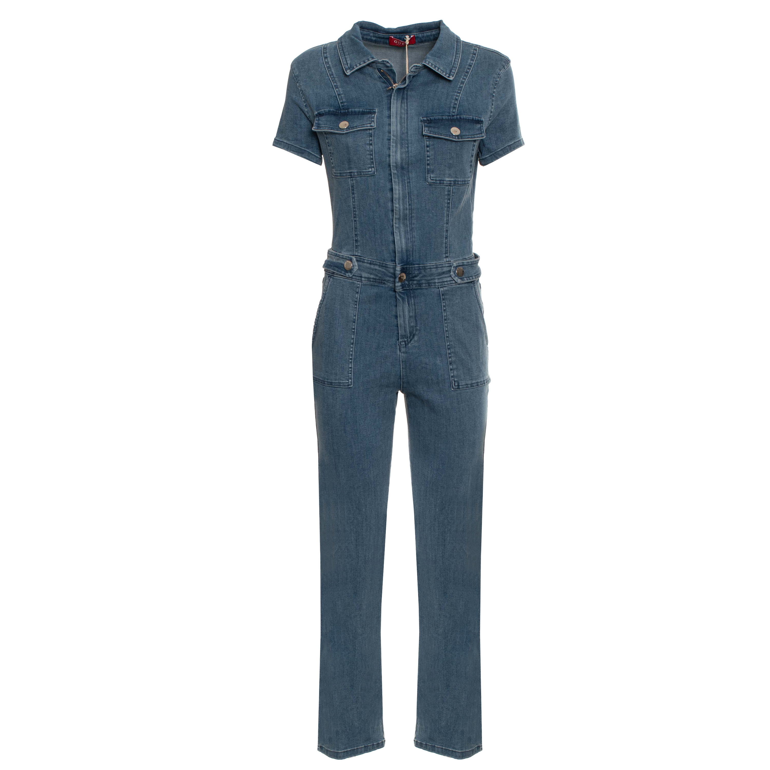 TUTA, DA DONNA, MANICA CORTA, TINTA UNITA, CON LOGO, CHIUSURA BOTTONI, CHIUSURA ZIP-PATRICIA DENIM JUMPSUIT