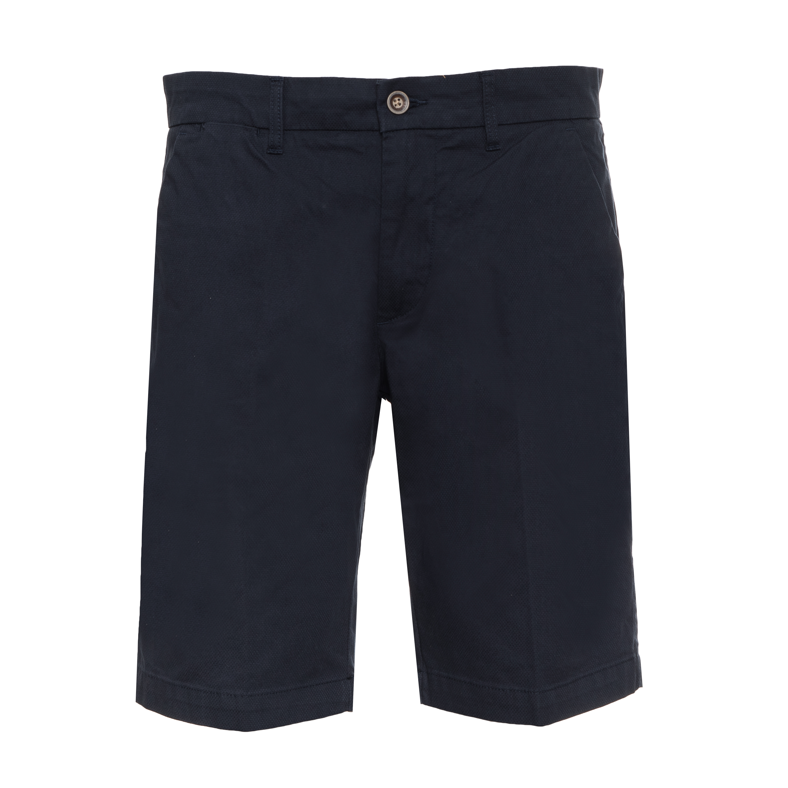 Questi bermuda Harmont & Blaine presentano un taglio chino essenziale, caratterizzato da una struttura pulita e lineare. Il tessuto, composto prevalentemente da cotone con una piccola percentuale di elastam, rivela una trama sottile e piacevole al tatto che assicura comfort durante l'uso quotidiano. La chiusura frontale è affidata a un bottone centrale coordinato e una pratica zip a scomparsa. Le tasche laterali a filo si integrano armoniosamente nella silhouette, mentre i passanti in vita permettono l’inserimento di cinture diverse. Il logo ricamato aggiunge un dettaglio distintivo a un capo versatile e sobrio.