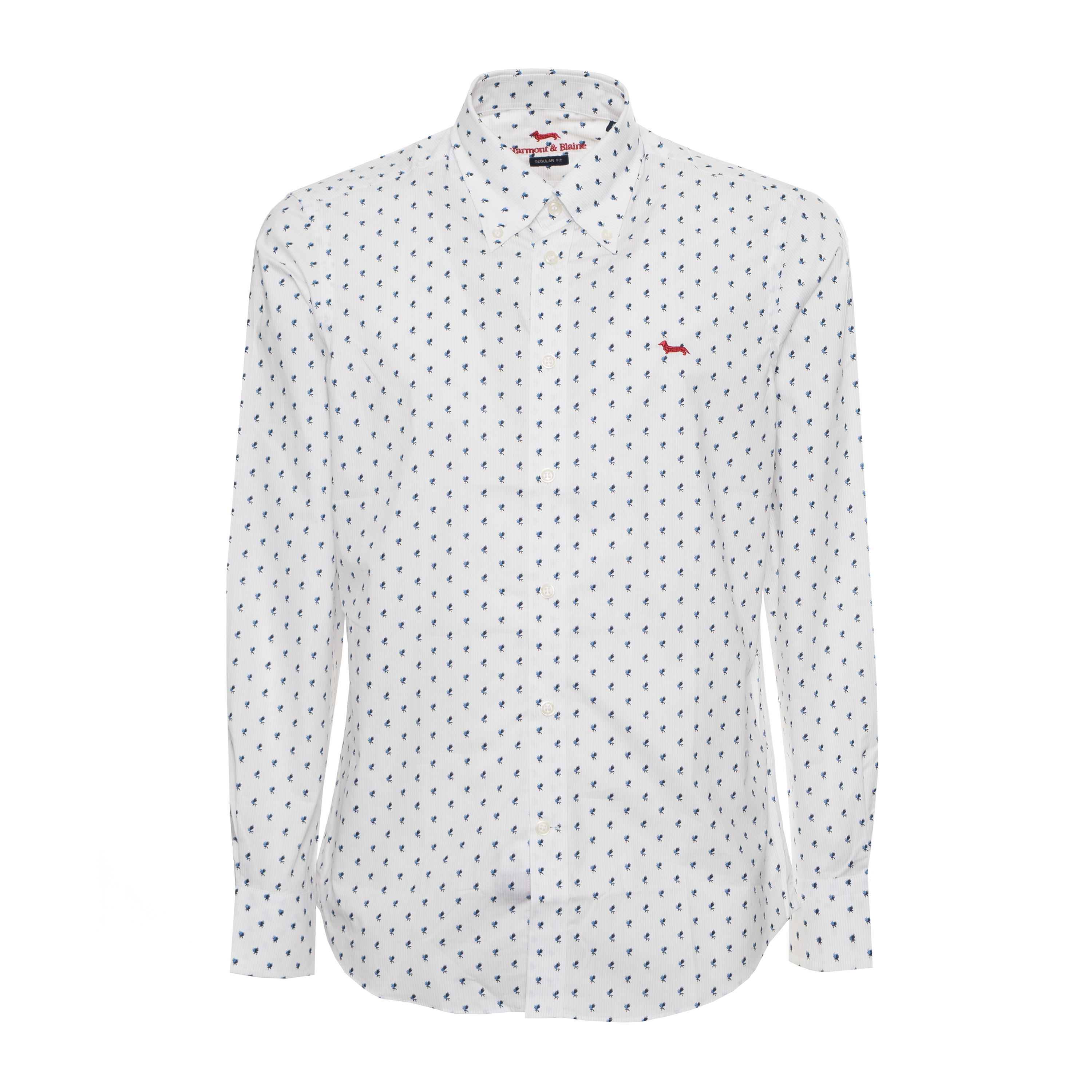 Questa camicia Harmont & Blaine presenta un taglio regular fit che assicura comfort e libertà di movimento. Il colletto button-down conferisce una struttura ordinata, mentre la chiusura frontale a bottoni mantiene una linea pulita. Realizzata interamente in puro cotone, la trama è arricchita da un motivo floreale bicolore distribuito uniformemente. Il logo del bassotto è meticolosamente ricamato sul petto, aggiungendo un dettaglio distintivo alla manica lunga. I polsini sono rifiniti con bottoni singoli, completando una costruzione sartoriale equilibrata e versatile.