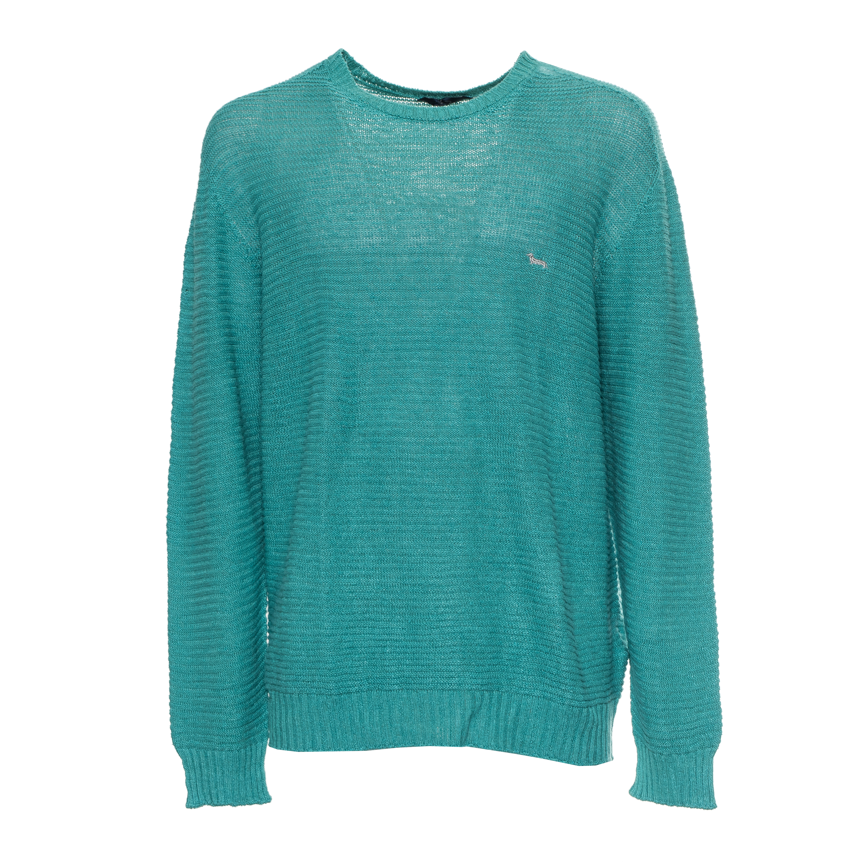 La maestria artigianale di Harmont & Blaine si manifesta in questa maglia girocollo prodotta interamente in Italia. Il design si distingue per una lavorazione a maglia testurizzata che alterna sottili rilievi orizzontali, conferendo profondità visiva al capo. Realizzata prevalentemente in lino con una componente di nylon, presenta finiture a costine elasticizzate sui polsi, sul fondo e sullo scollo. Il piccolo logo ricamato sul petto aggiunge un dettaglio distintivo discreto. La struttura leggera assicura un indosso confortevole e una caduta fluida lungo i fianchi.